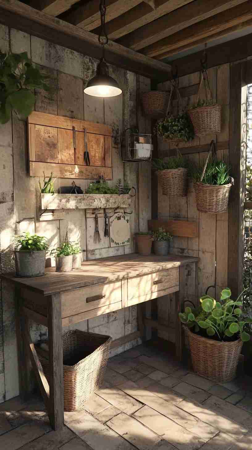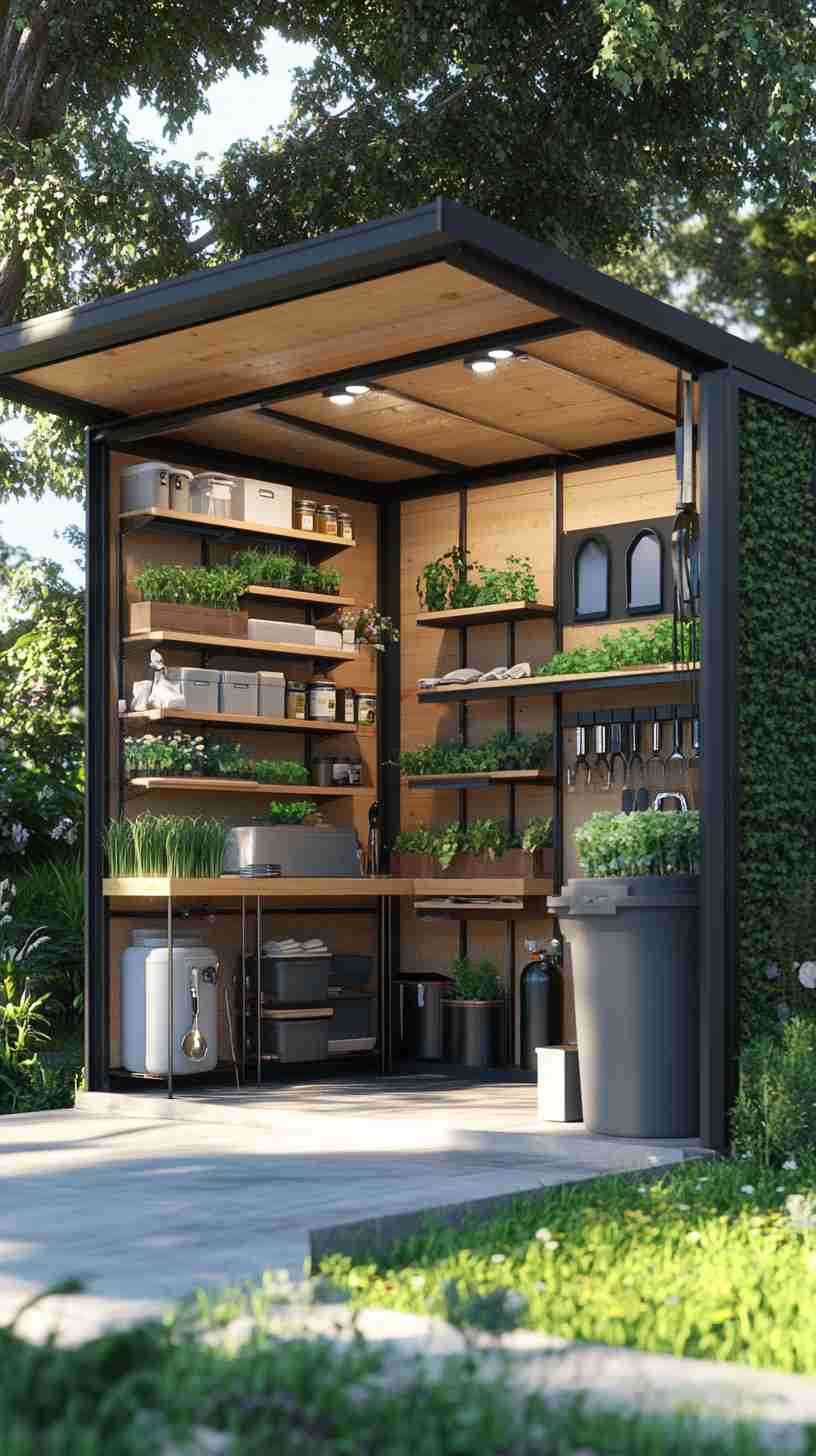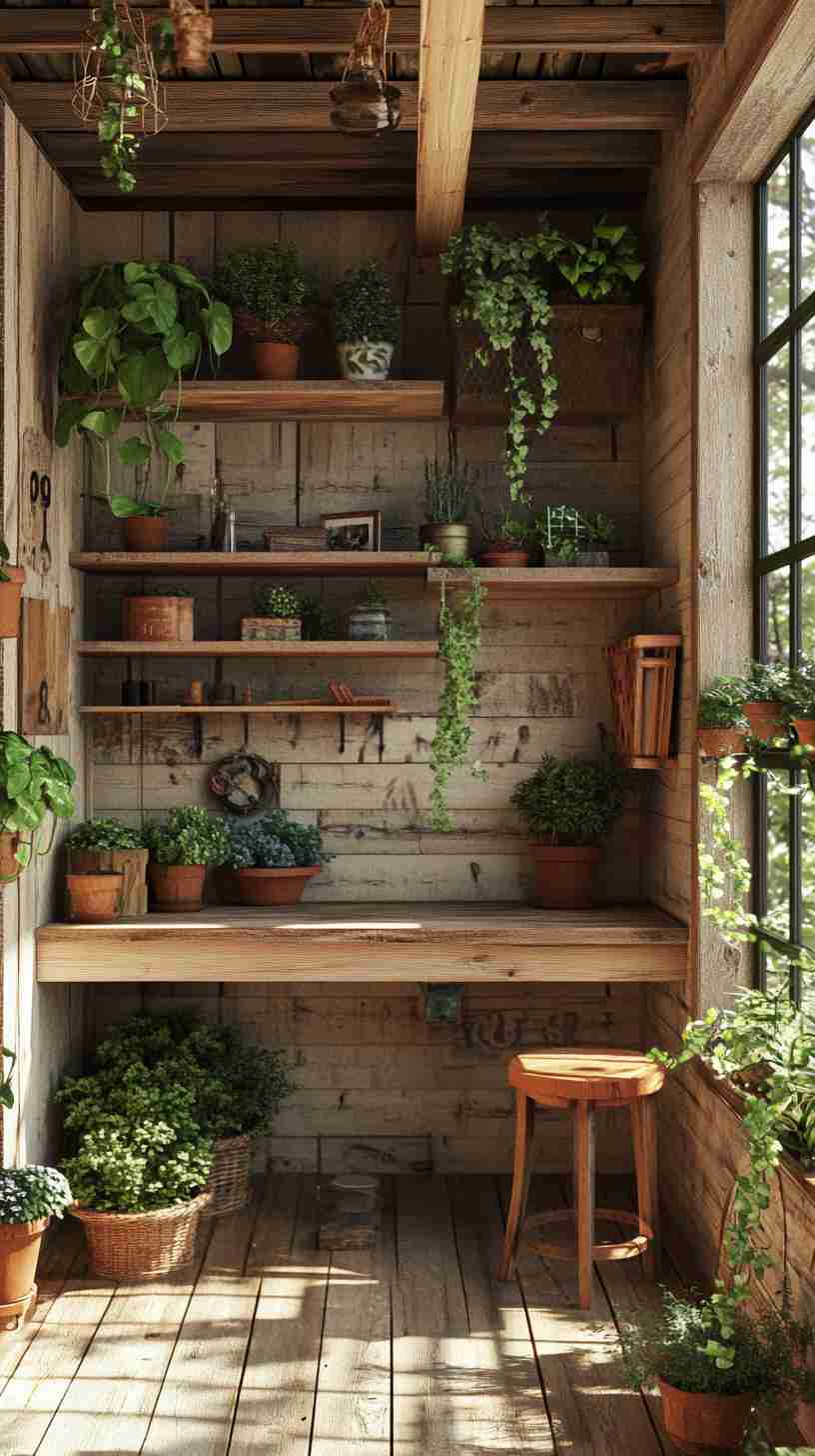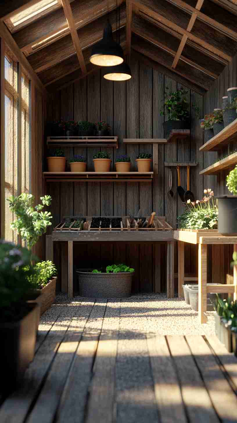 - Functional Details: Elements like gardening tools, workbenches, potted plants, or outdoor seating, emphasizing the shed’s practical purpose.