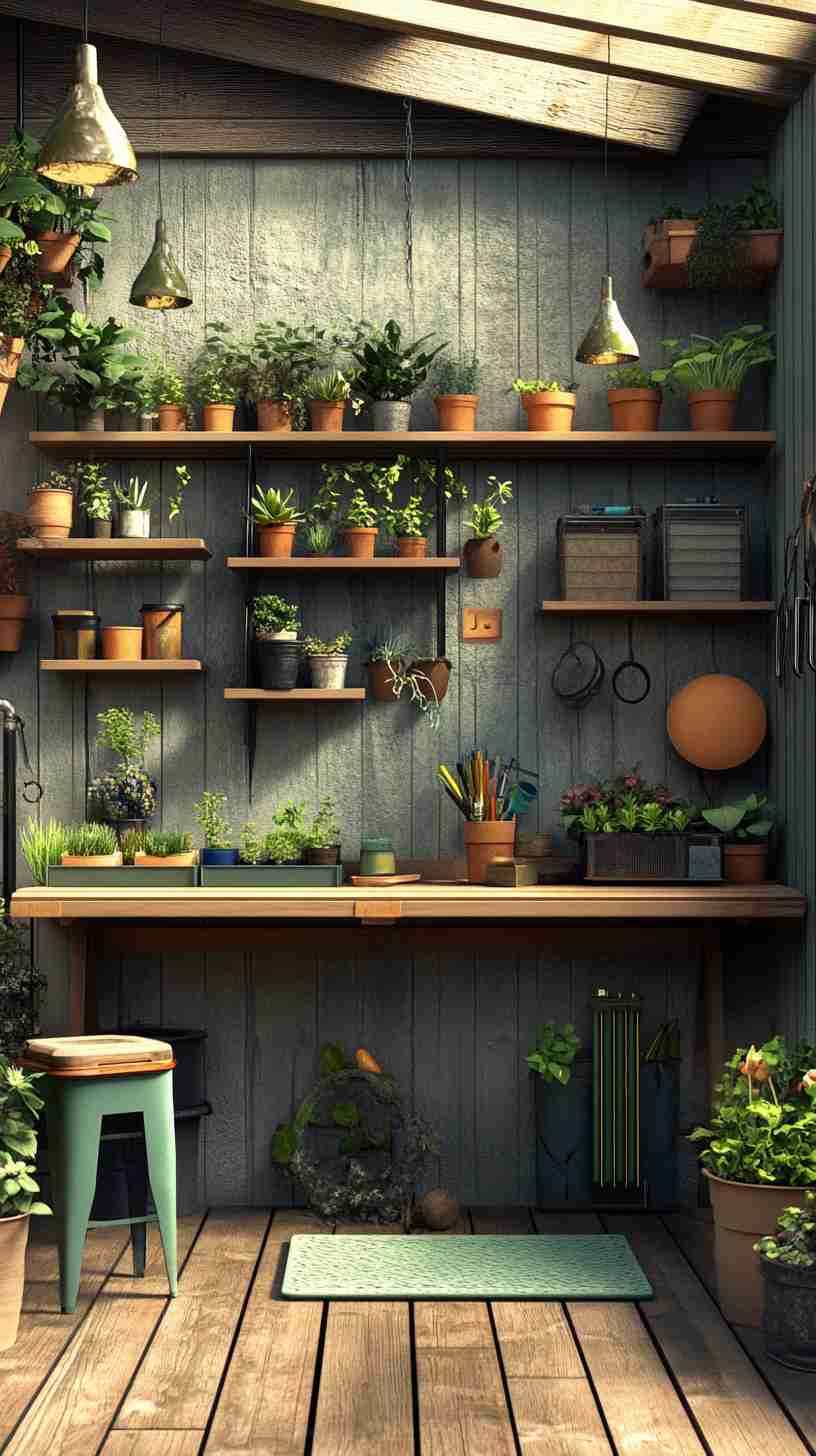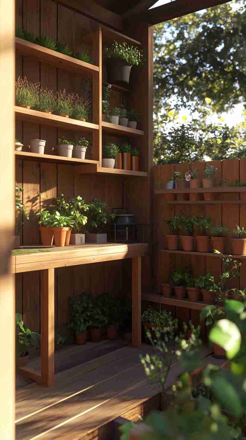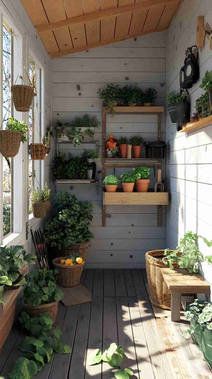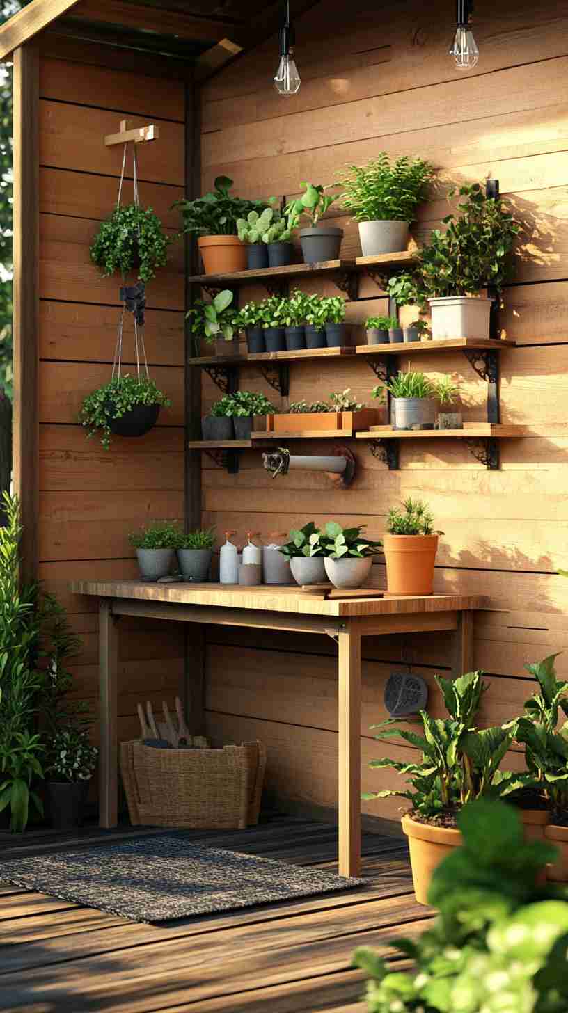 - Functional Details: Elements like gardening tools, workbenches, potted plants, or outdoor seating, emphasizing the shed’s practical purpose.
