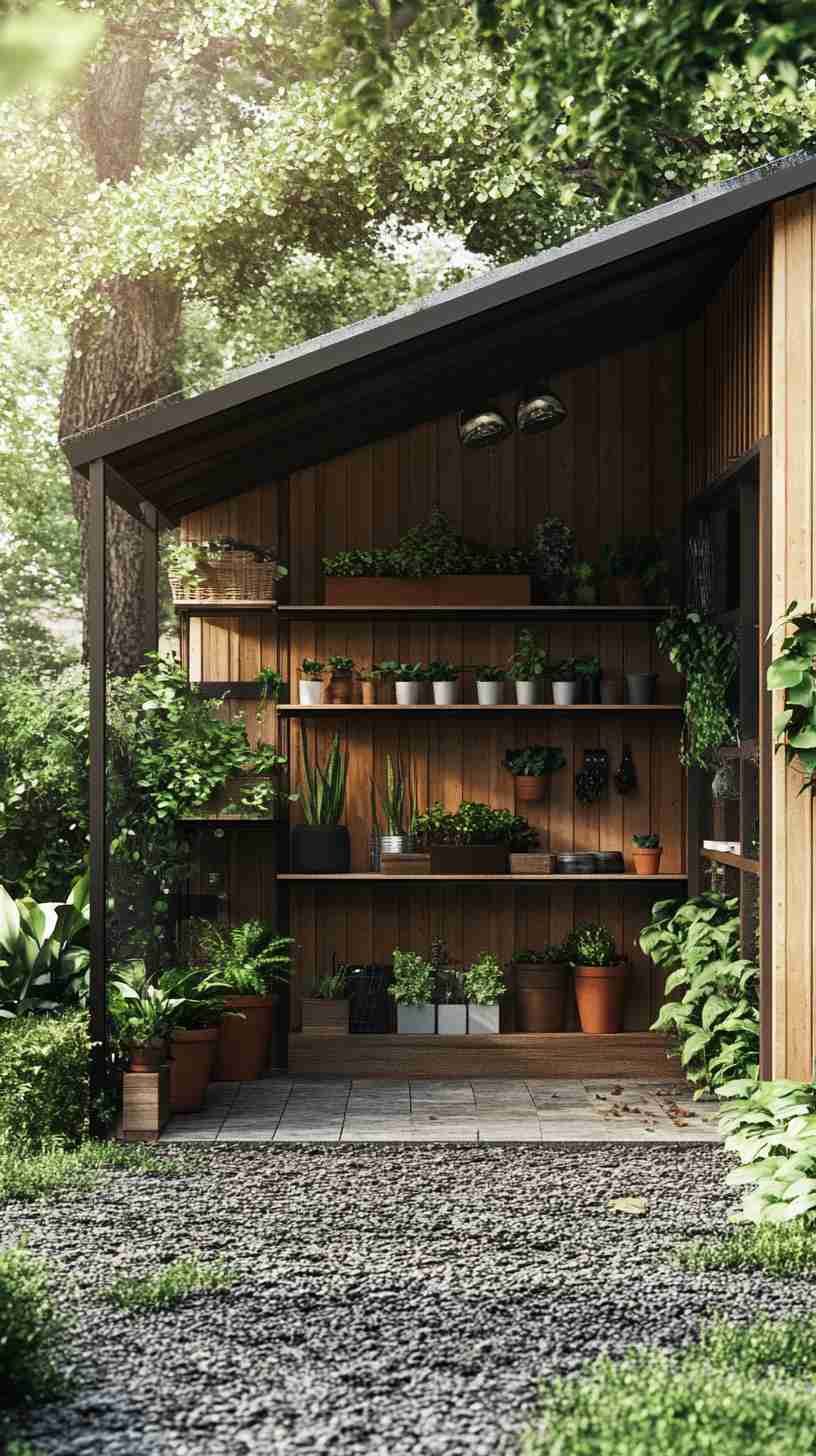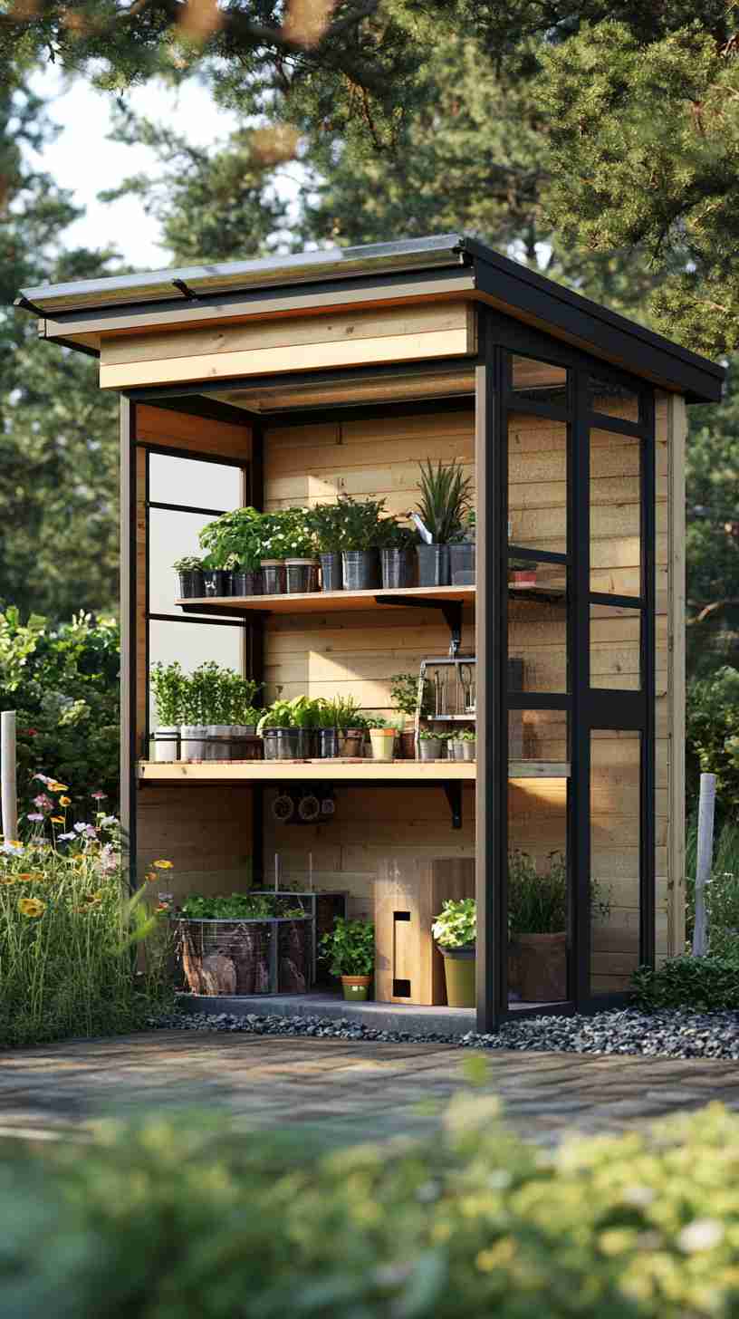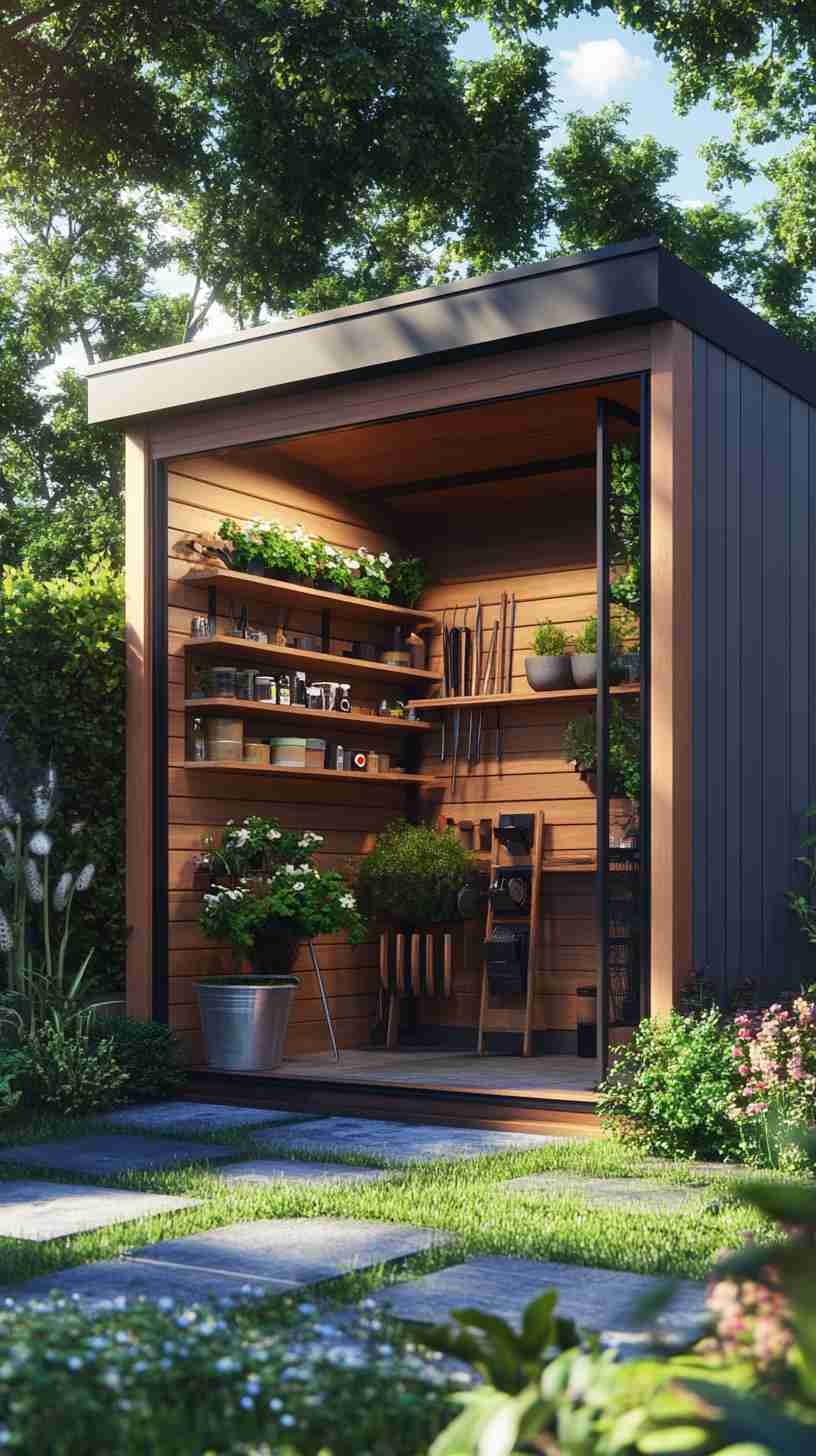 - Modern Minimalist Sheds: Sleek sheds with clean lines and neutral tones, set against urban backyards or minimalist landscapes, for a contemporary aesthetic.