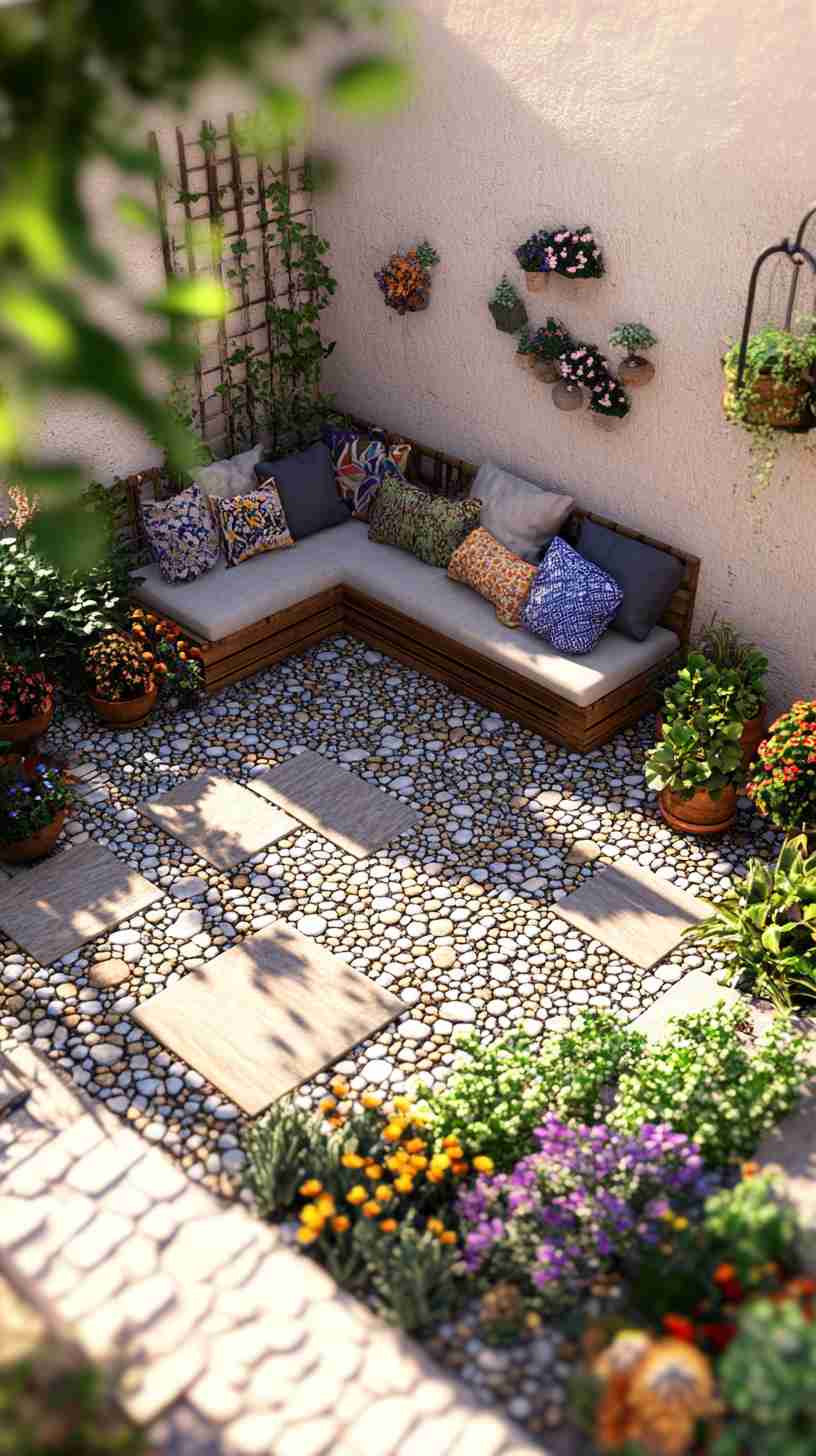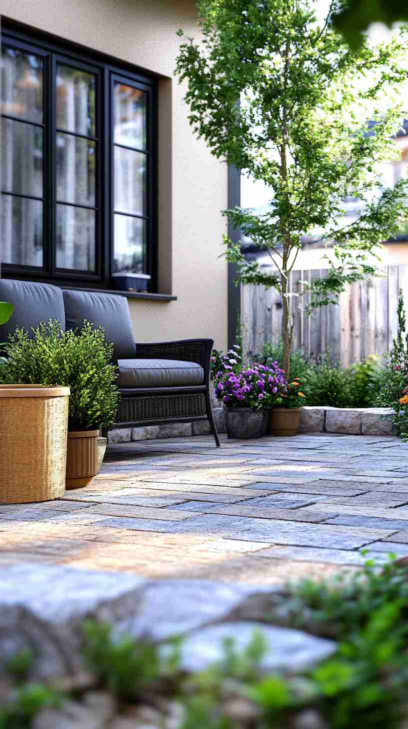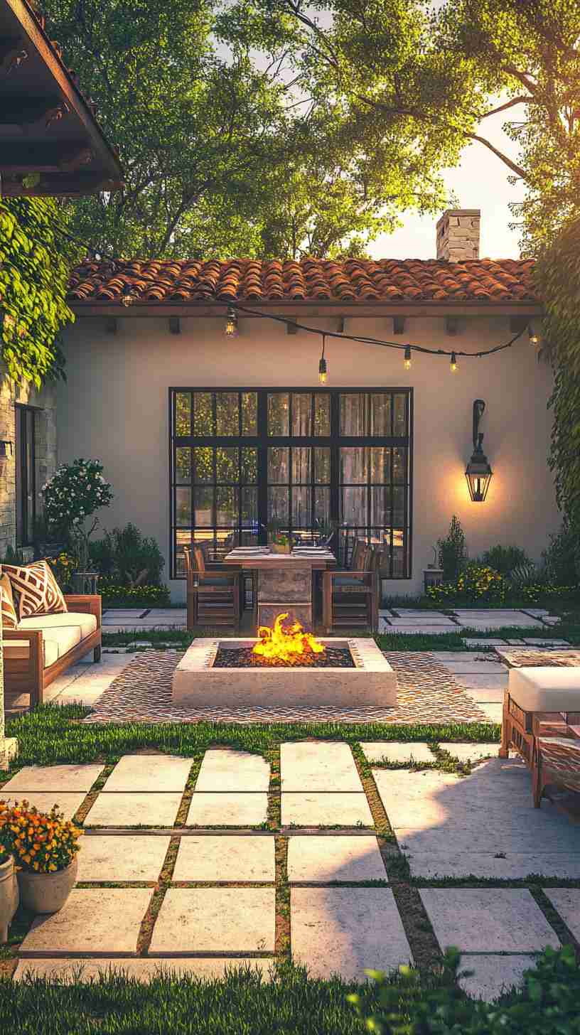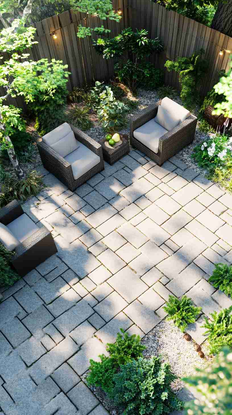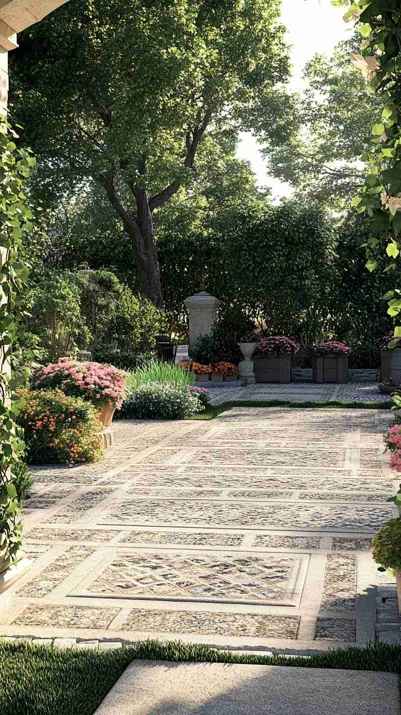 - Mediterranean Paver Courtyards: Stone or terracotta paver designs with vibrant plants or wrought-iron decor, reflecting Mediterranean elegance.