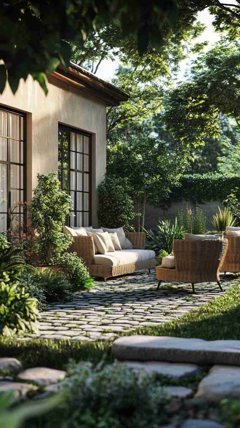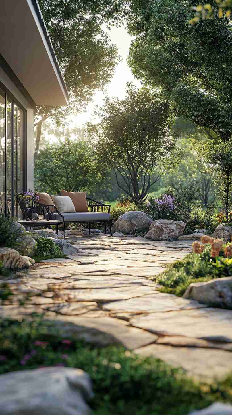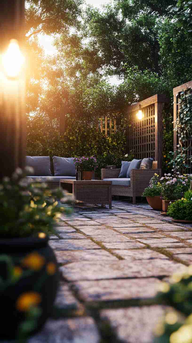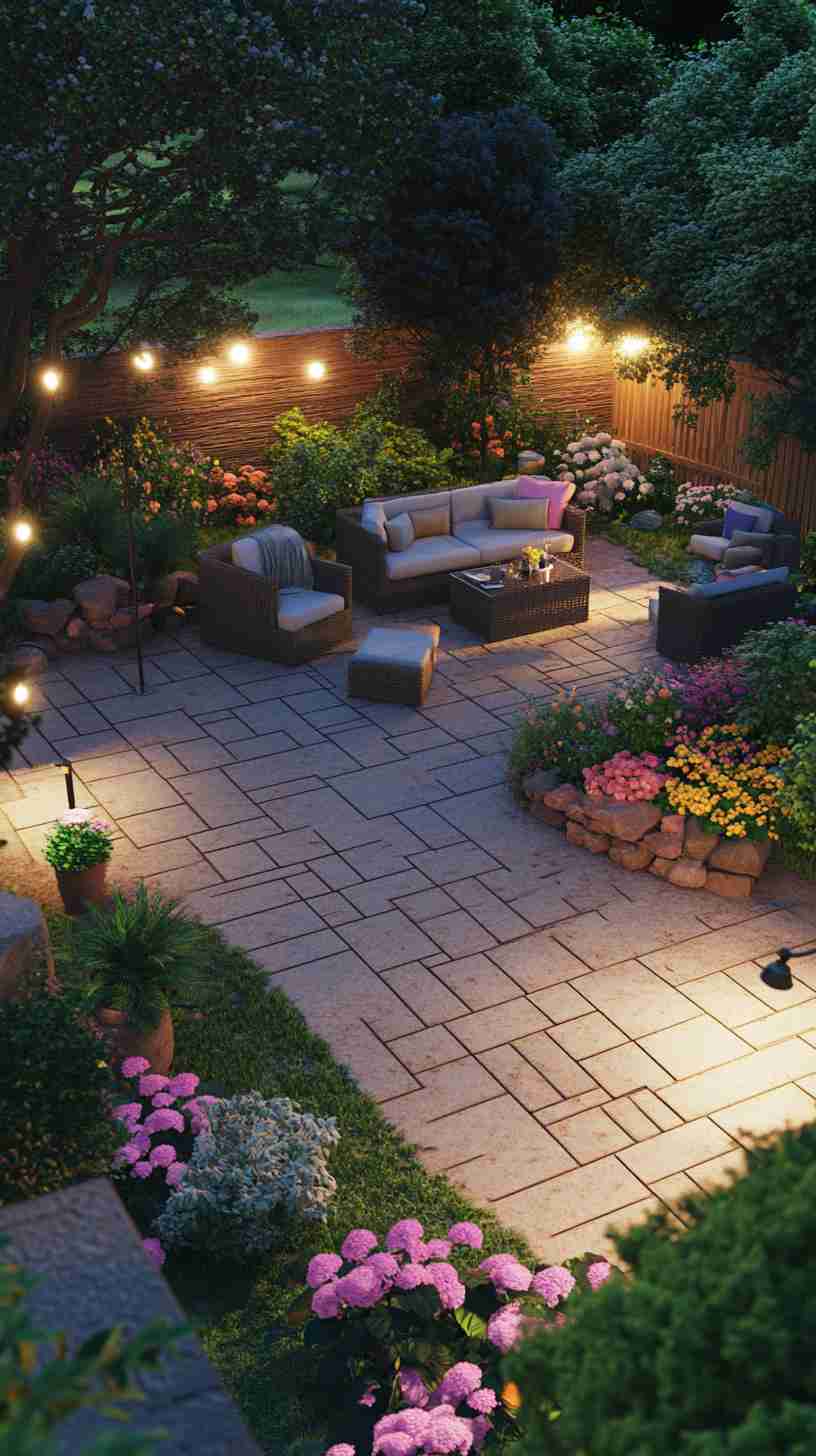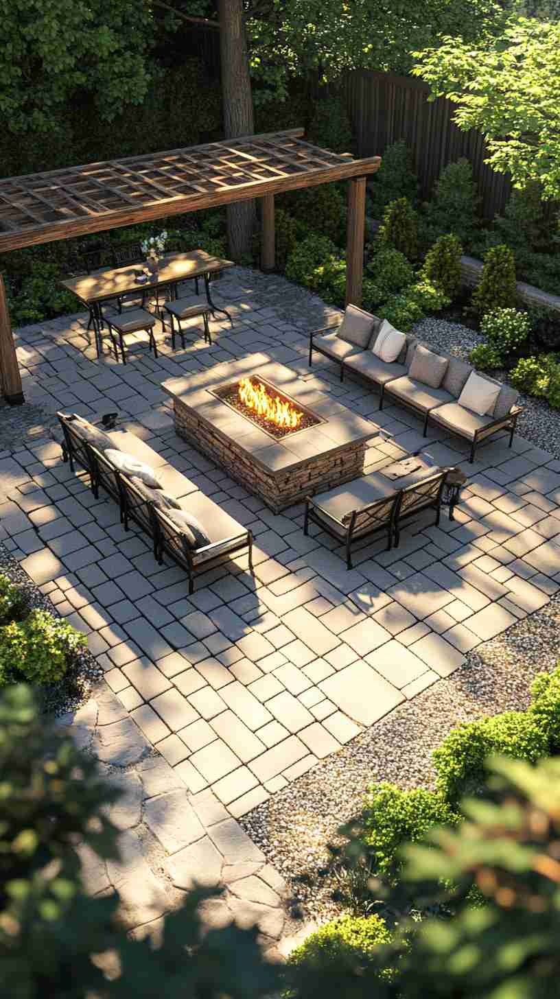 - Classic Stone Paver Patios: Weathered stone pavers in intricate patterns, set in lush gardens with outdoor seating, evoking timeless outdoor charm.