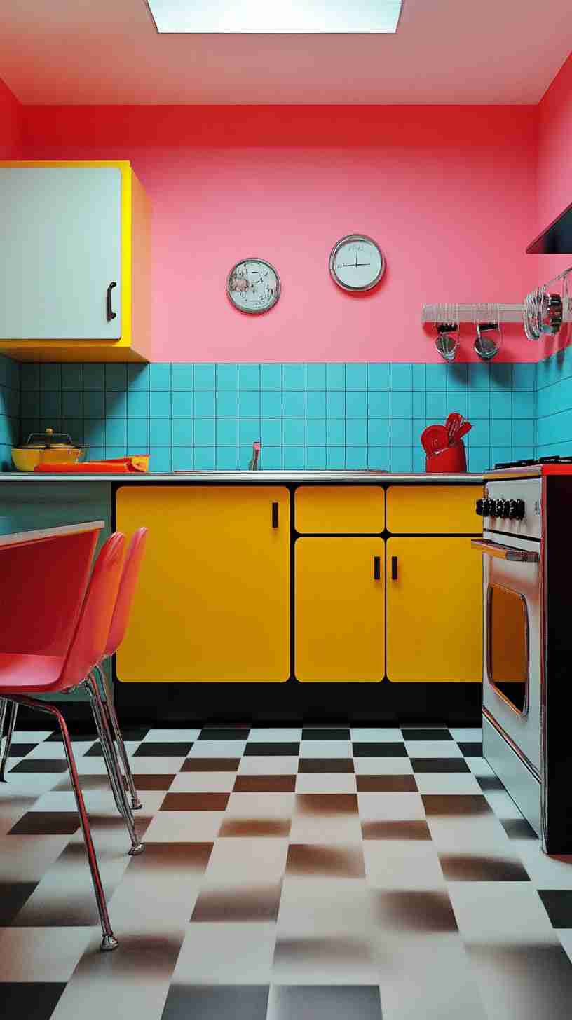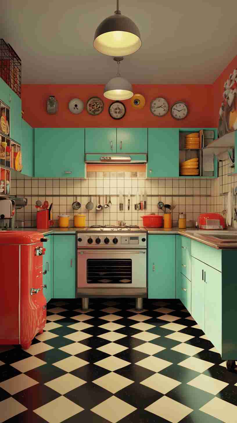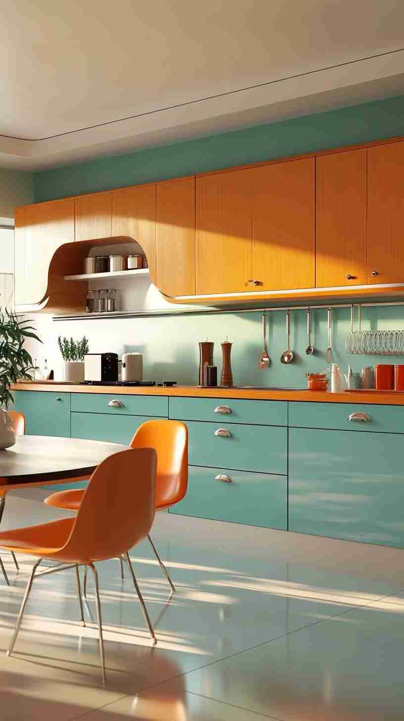 - Pop-Art Kitchens: Vibrant kitchens with bold wallpaper patterns, Formica countertops, and bright appliances, reflecting the decade’s playful energy.
