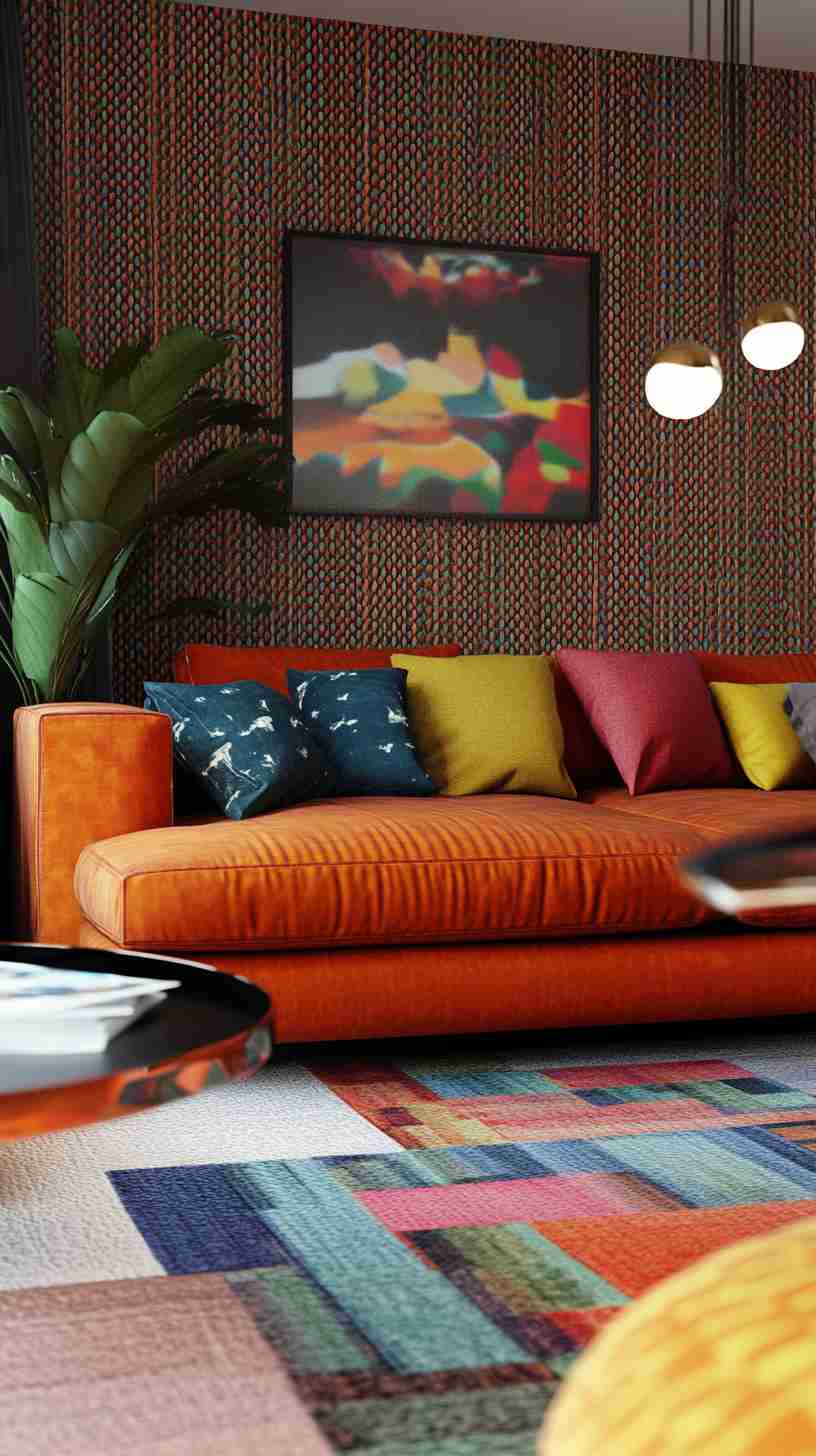 - Vivid Color Palettes: Bright oranges, mustard yellows, teal blues, avocado greens, and pops of red or pink that define the 1960s color scheme.