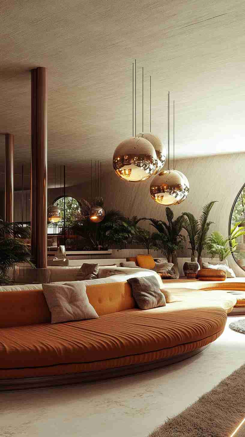 - Space-Age Inspired Interiors: Futuristic designs with rounded furniture, metallic accents, and bold geometric patterns, reflecting the 1960s fascination with space exploration.
