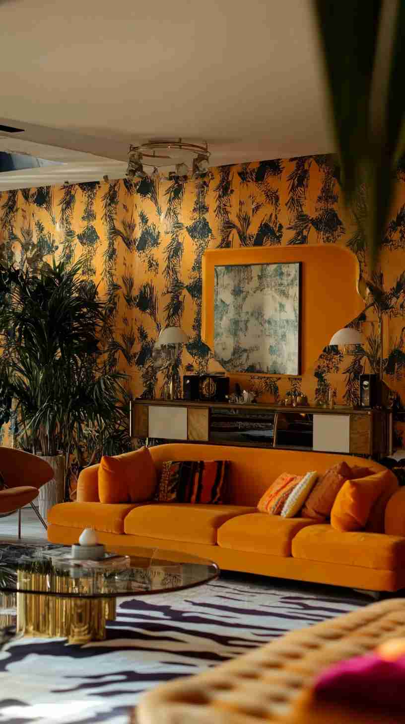 1970s Interior Design wallpapers can redefine the ambiance of your home, blending the bold nostalgia of the decade with the vibrancy of retro design. Here’s how they can enhance different spaces:
