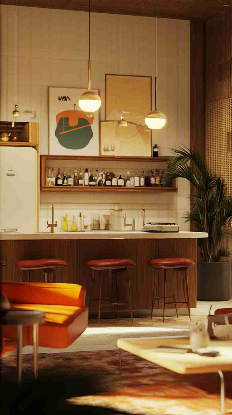 - Iconic Design Elements: Macramé wall hangings, lava lamps, vinyl records, sunburst mirrors, or disco balls, reflecting the decade’s cultural and design trends.