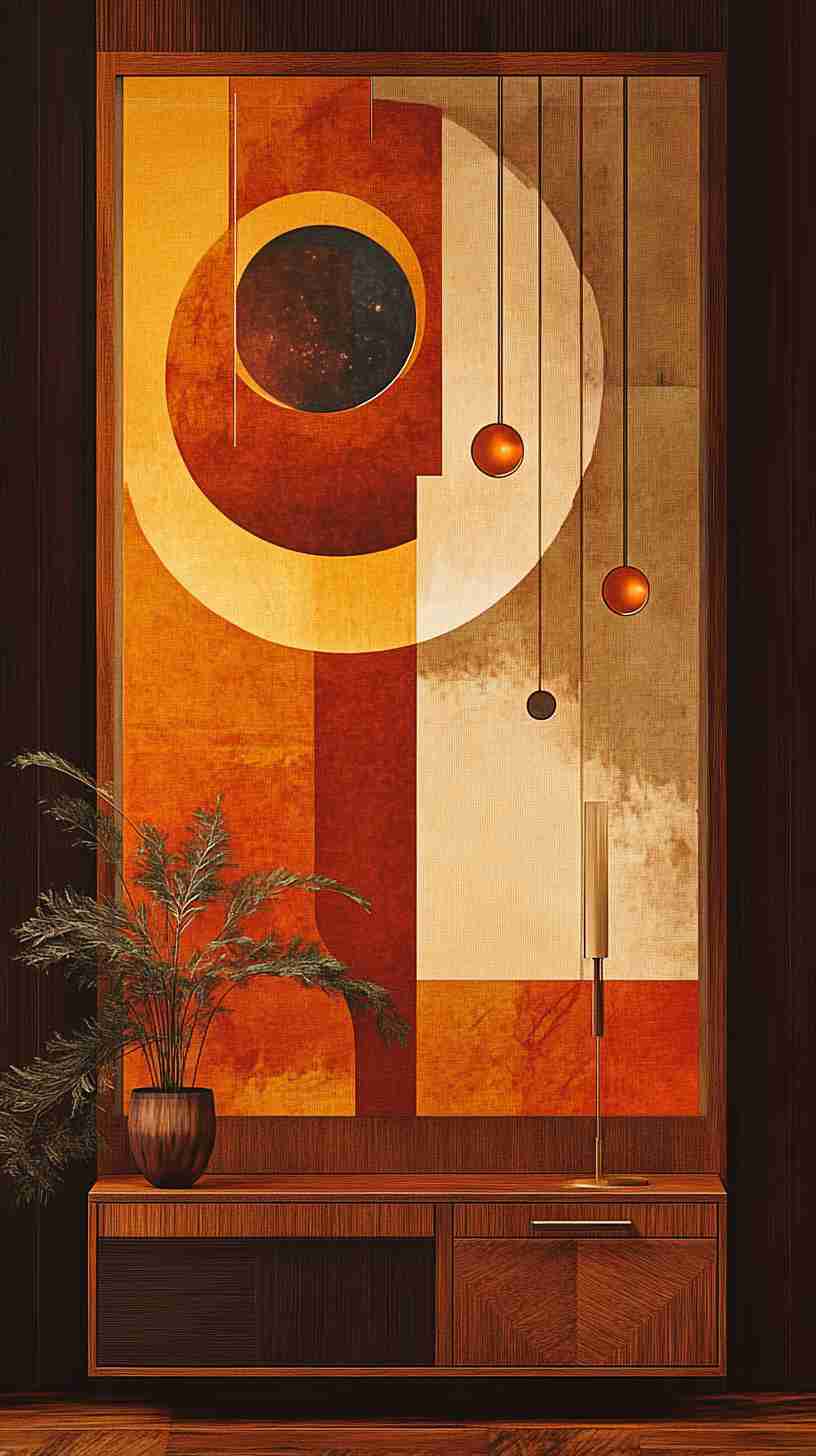 A 4K wallpaper featuring a 70s living room with shag carpets, a sunburst mirror, or a disco ball can turn your living room’s TV or digital frame into a dynamic focal point. The bold colors and retro motifs create a lively, nostalgic atmosphere that pairs well with bohemian, eclectic, or retro-modern decor.