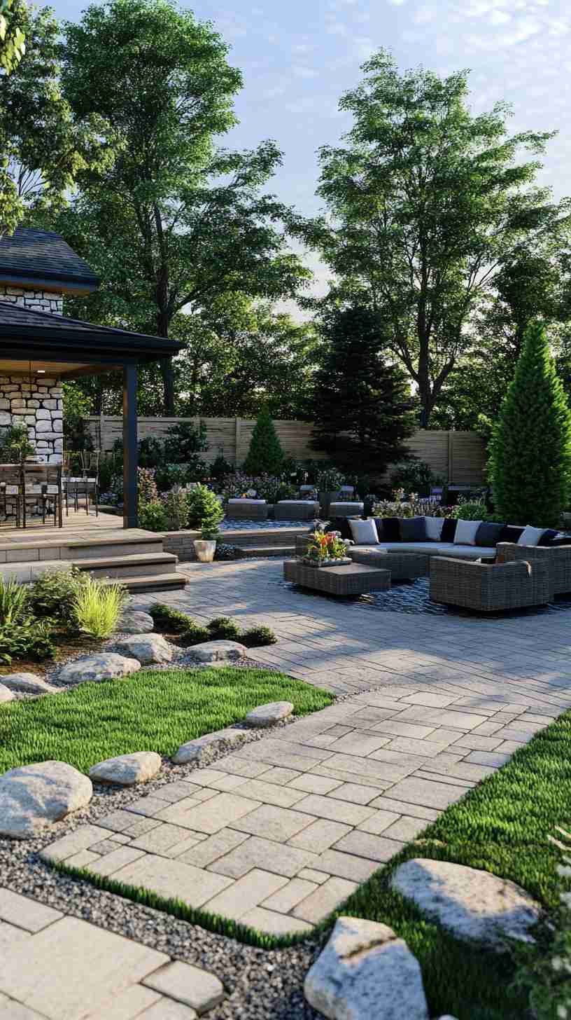 - Modern Minimalist Patios: Sleek outdoor spaces with clean lines, concrete pavers, and minimalist plantings, for a contemporary aesthetic.