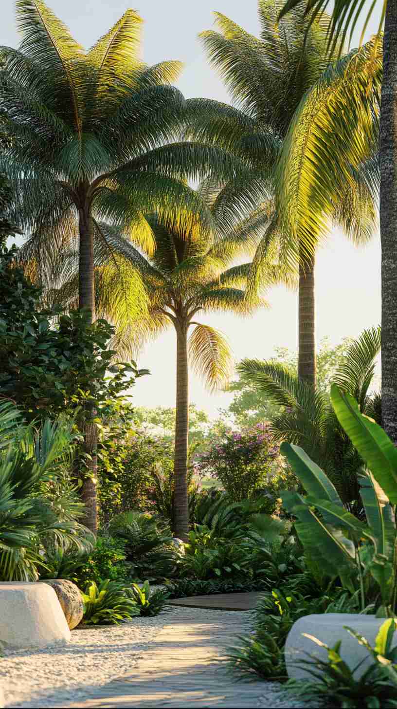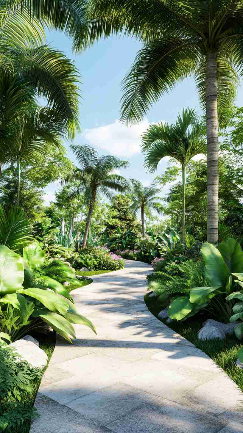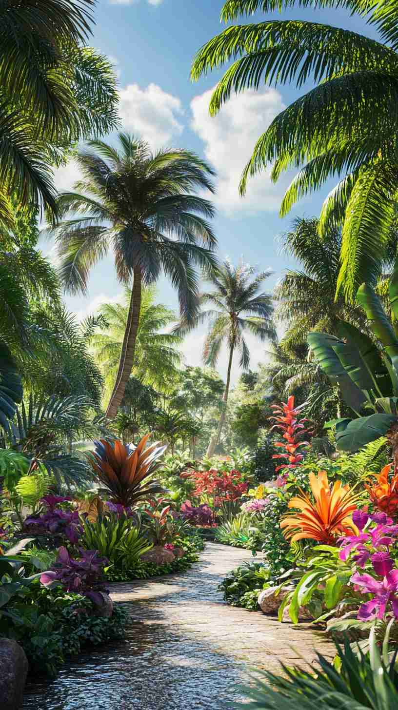 - Tropical Oasis Gardens: Vibrant landscapes with exotic plants, water features, and colorful blooms, reflecting a lush, tropical vibe.
