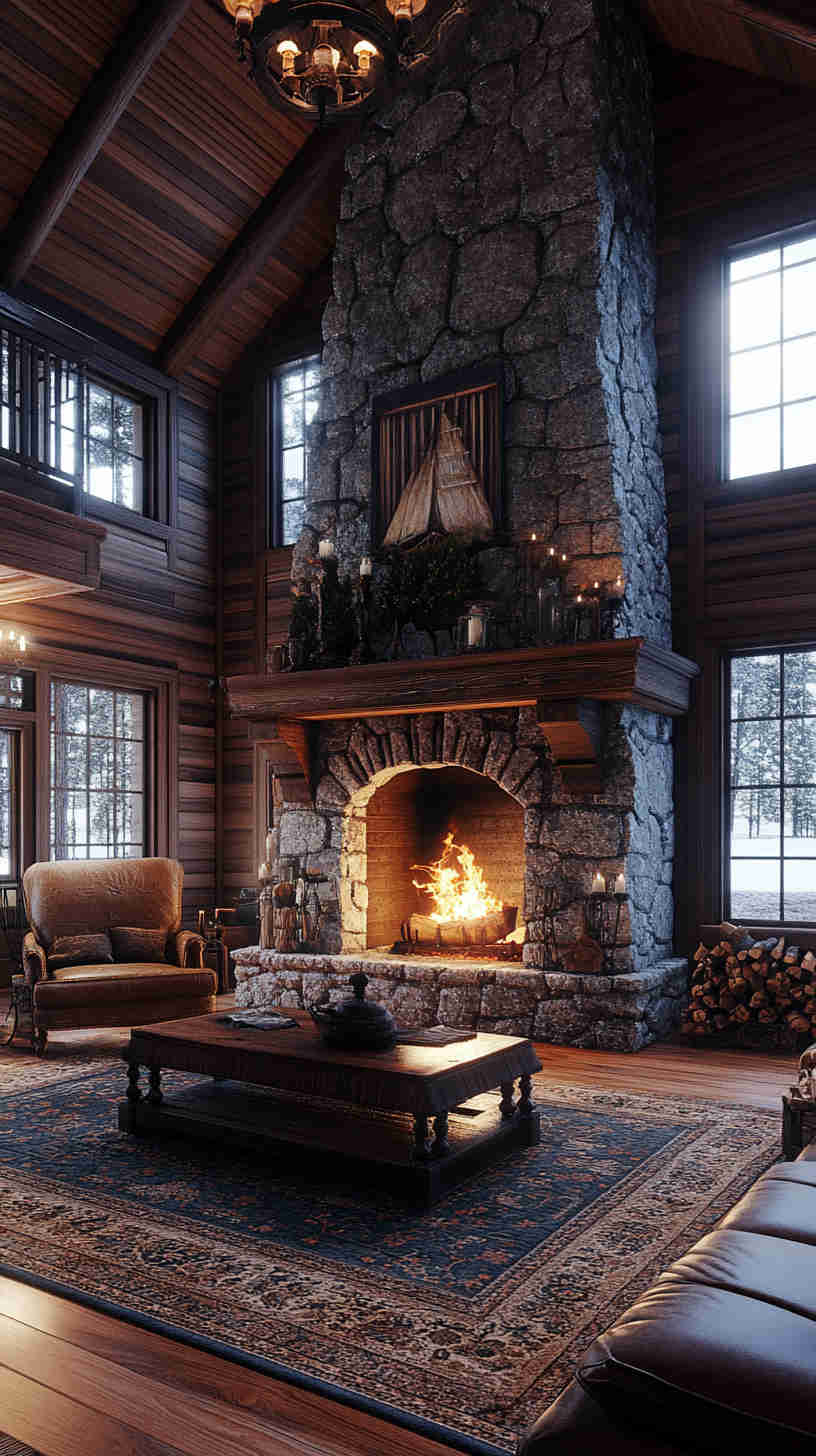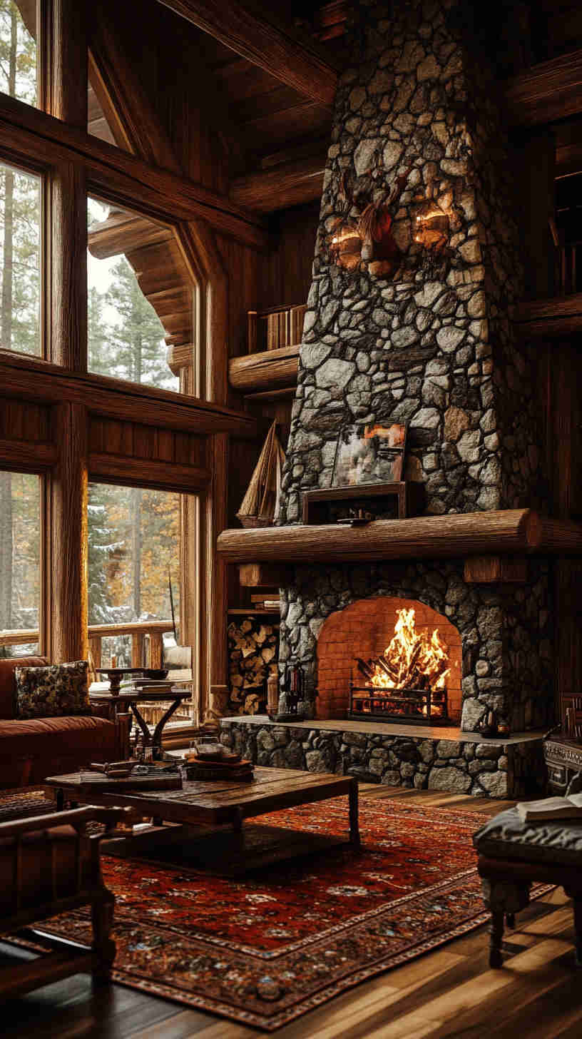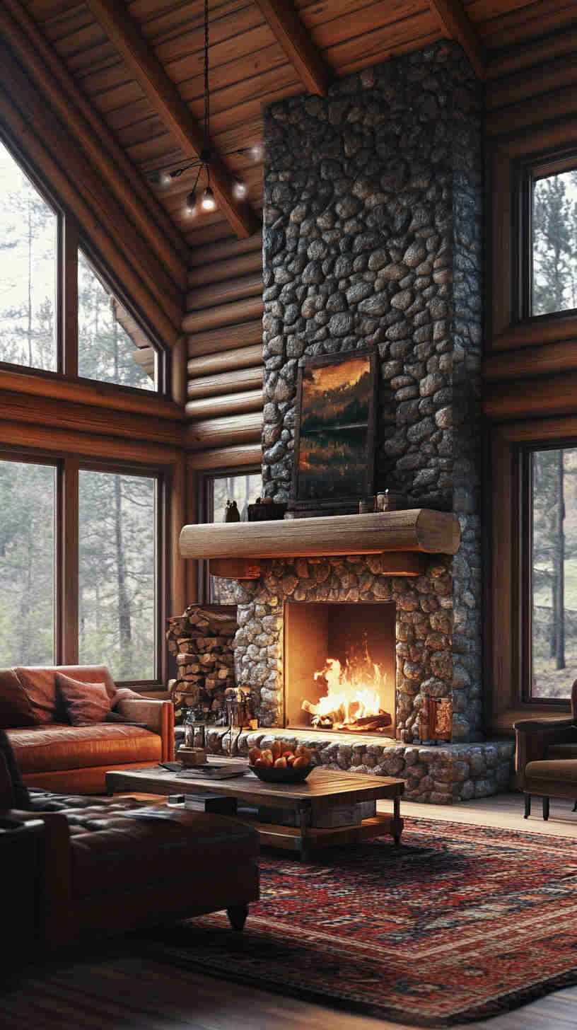 - Fireplace-Centered Coziness: Living rooms with glowing stone fireplaces, plush rugs, and wooden walls, evoking ultimate warmth and relaxation.