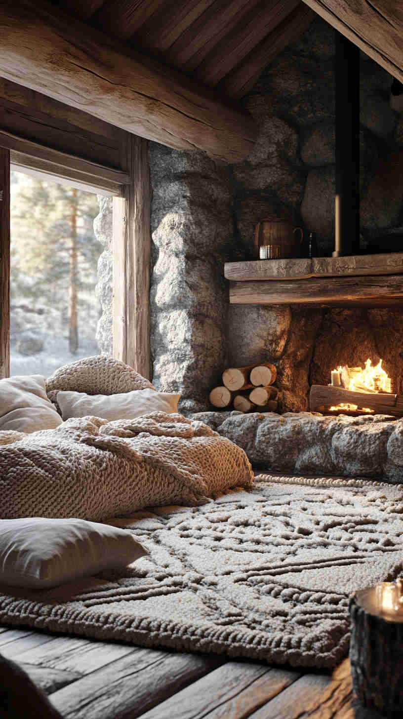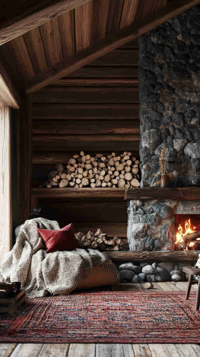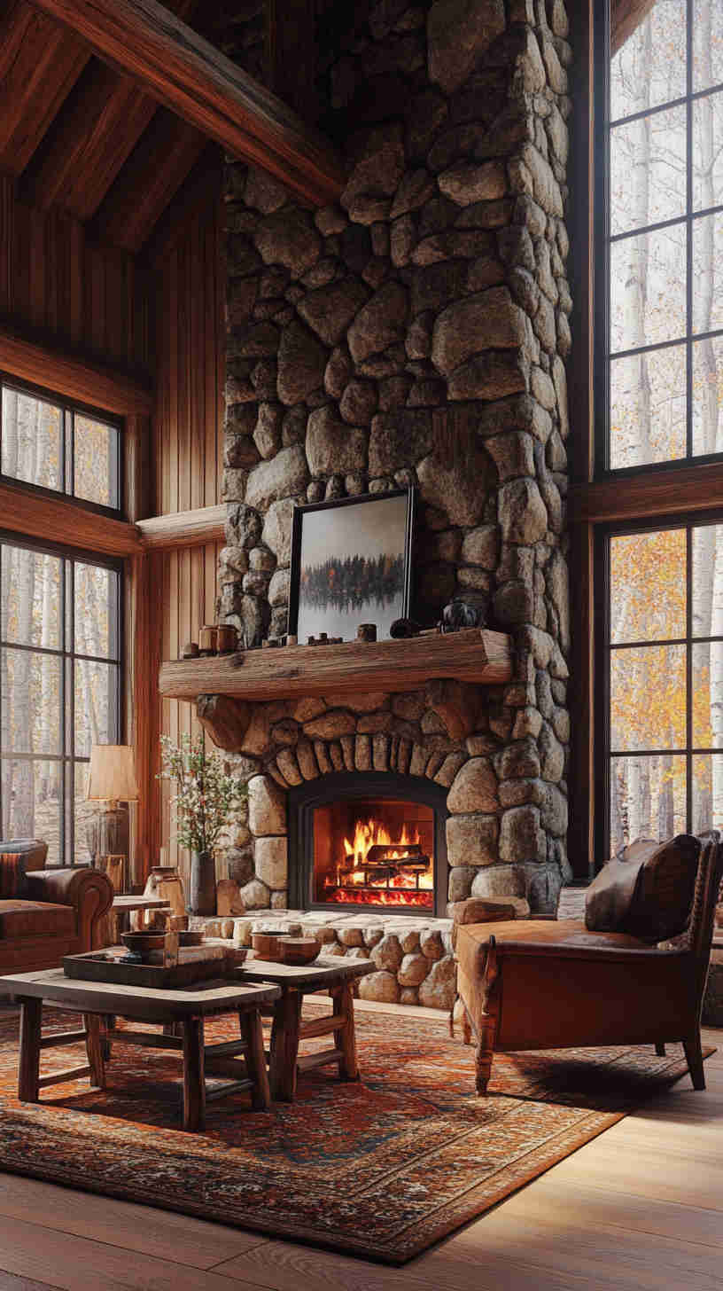 - Fireplace-Centered Coziness: Living rooms with glowing stone fireplaces, plush rugs, and wooden walls, evoking ultimate warmth and relaxation.