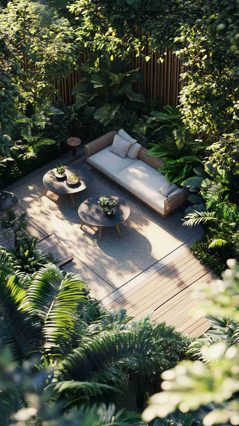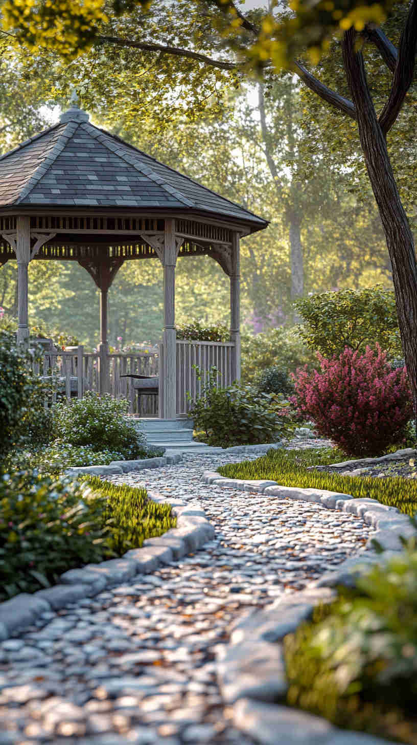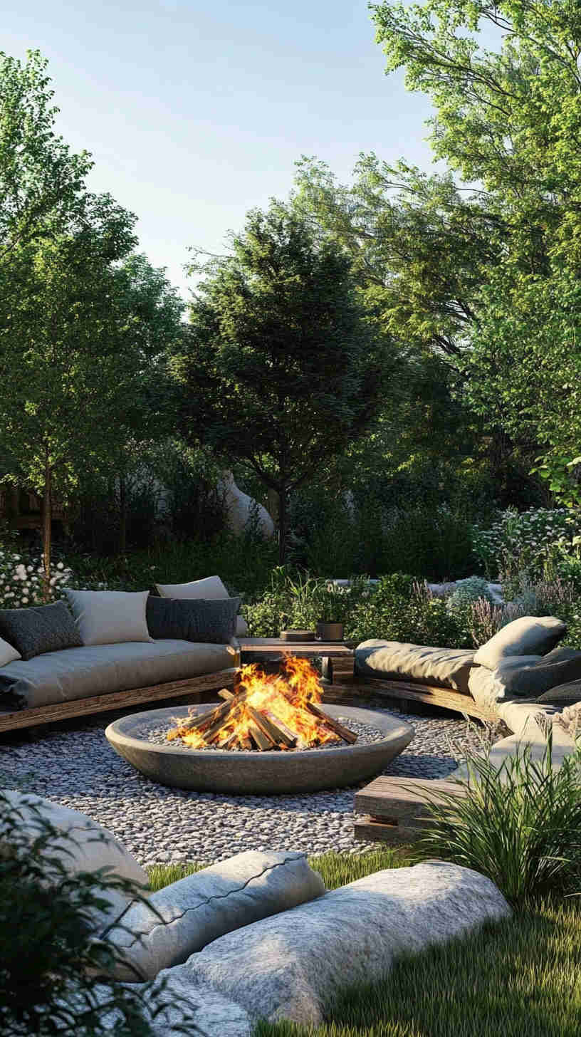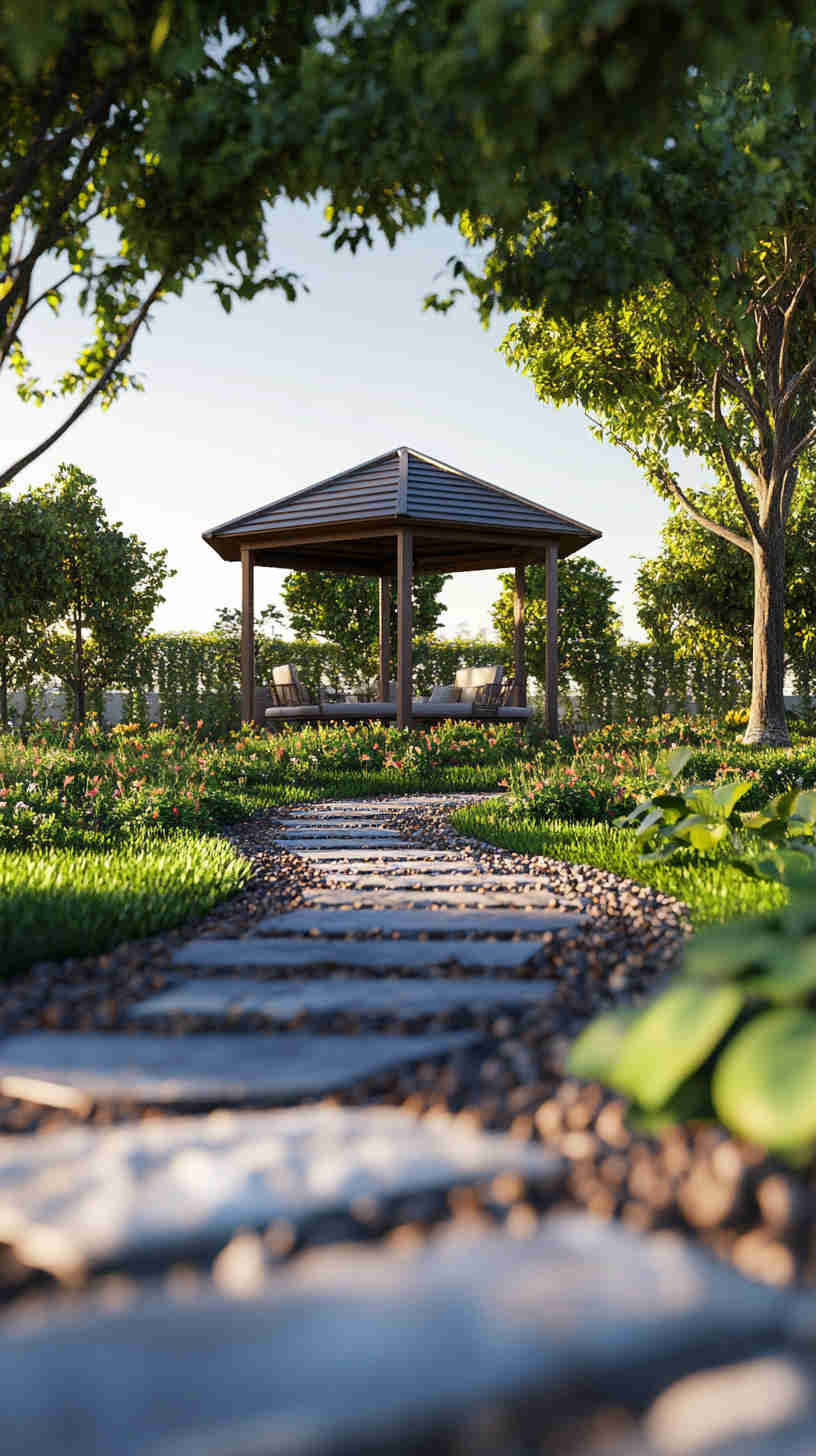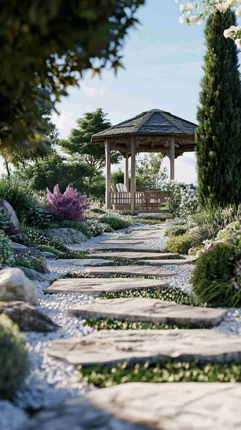 - Zen Garden Serenity: Raked gravel, bonsai trees, and stone lanterns, highlighting peaceful Japanese-inspired designs.