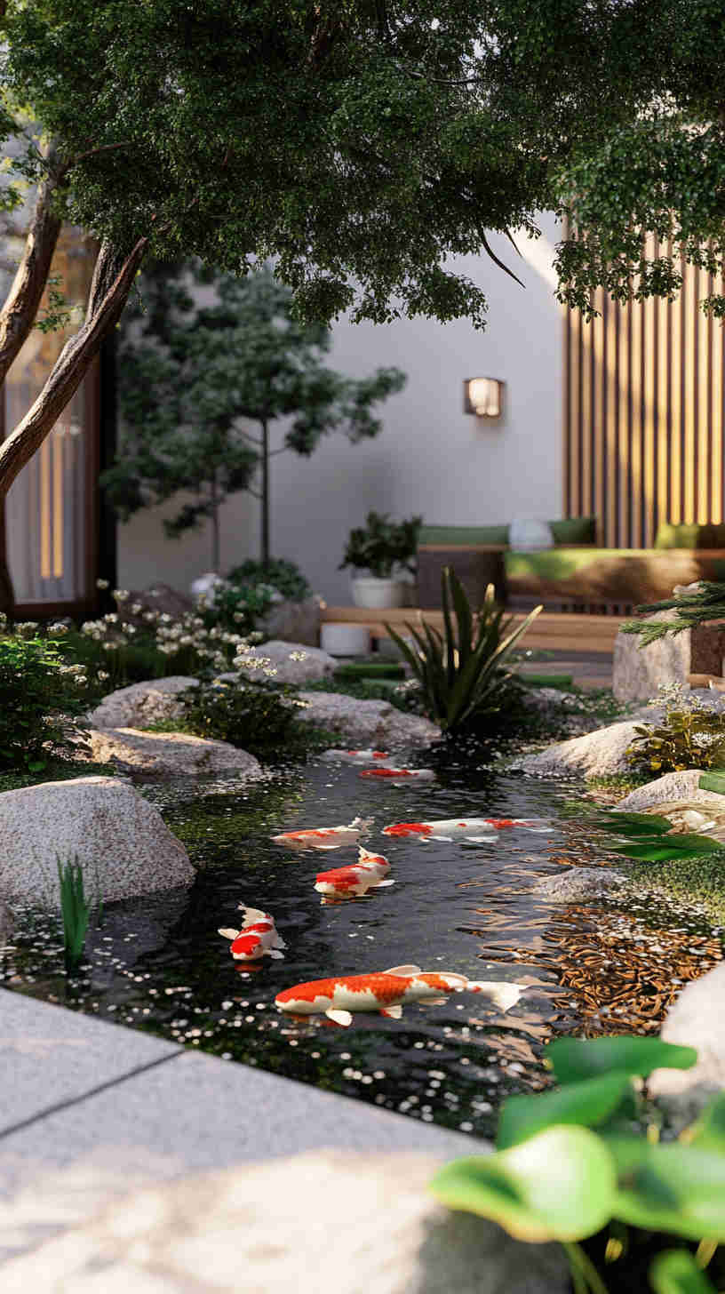 - Natural and Artistic Details: Elements like cascading vines, blooming hydrangeas, serene koi ponds, or golden-hour lawns, emphasizing the seamless blend of nature and design.