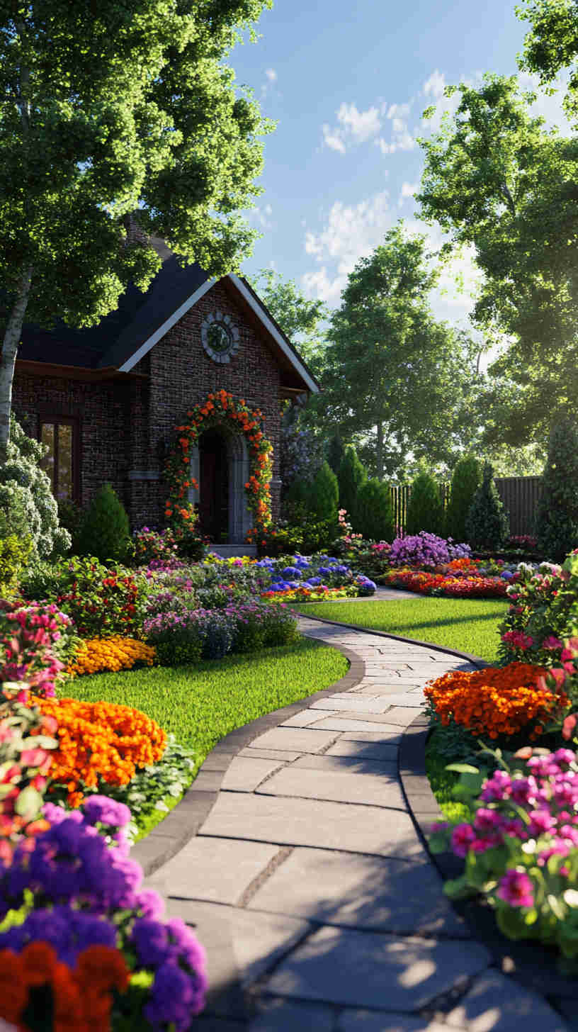 - Formal English Gardens: Manicured lawns with blooming roses, topiary hedges, and elegant stone paths, evoking timeless sophistication.