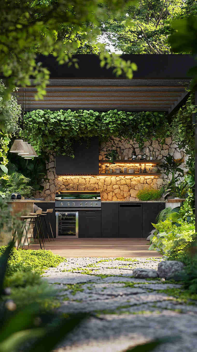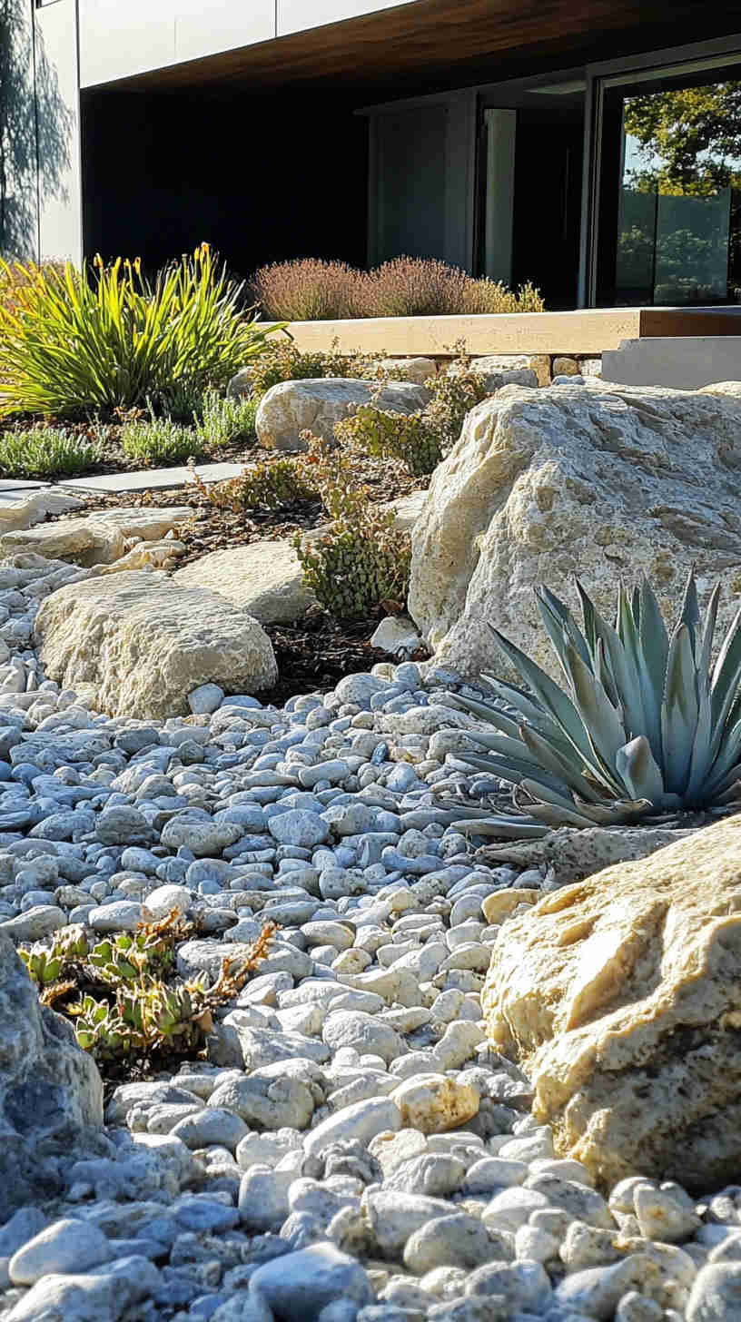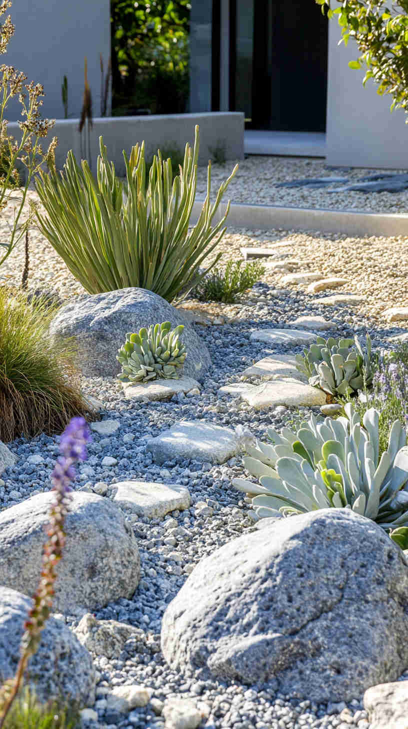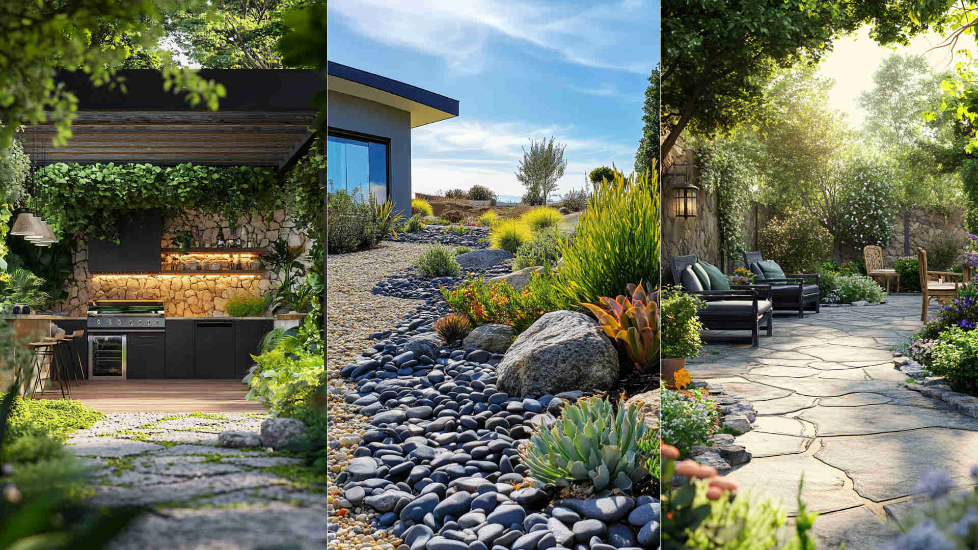- Zen Garden Serenity: Raked gravel, bonsai trees, and stone lanterns, highlighting peaceful Japanese-inspired designs.