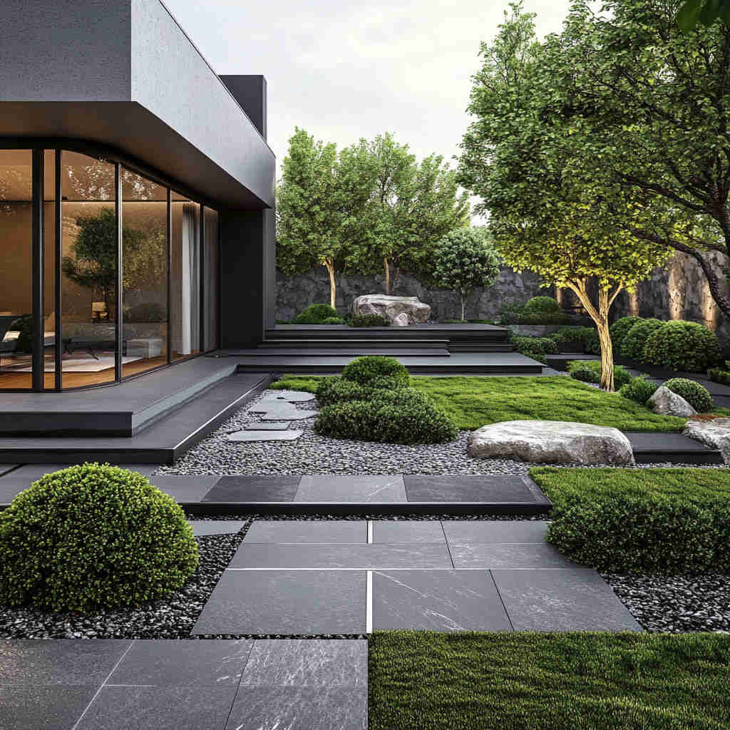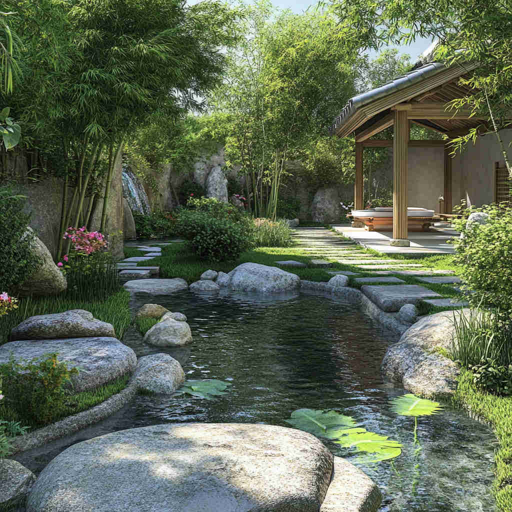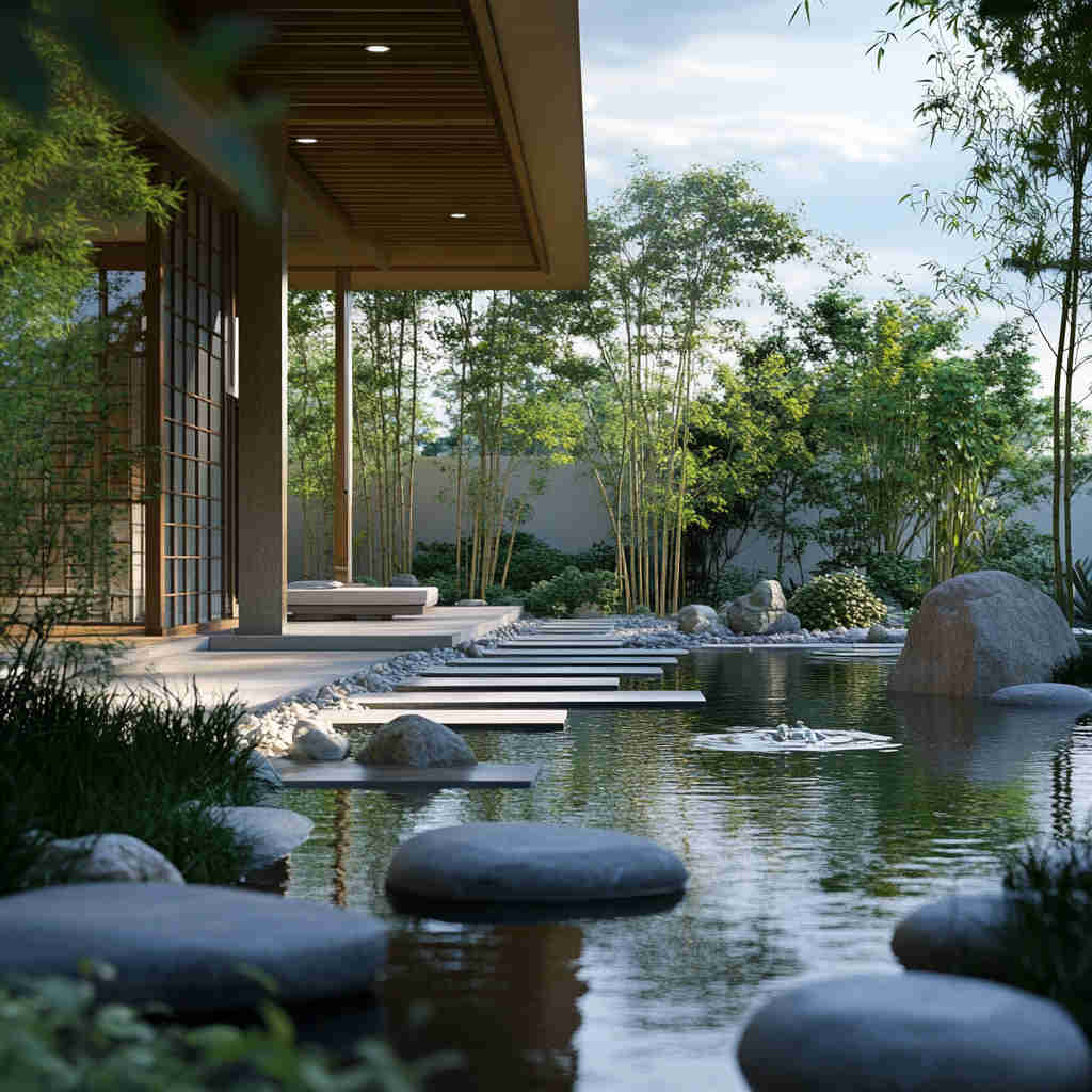 - Zen-Inspired Retreats: Gravel paths, bonsai trees, and stone lanterns, highlighting peaceful Japanese-inspired designs.
