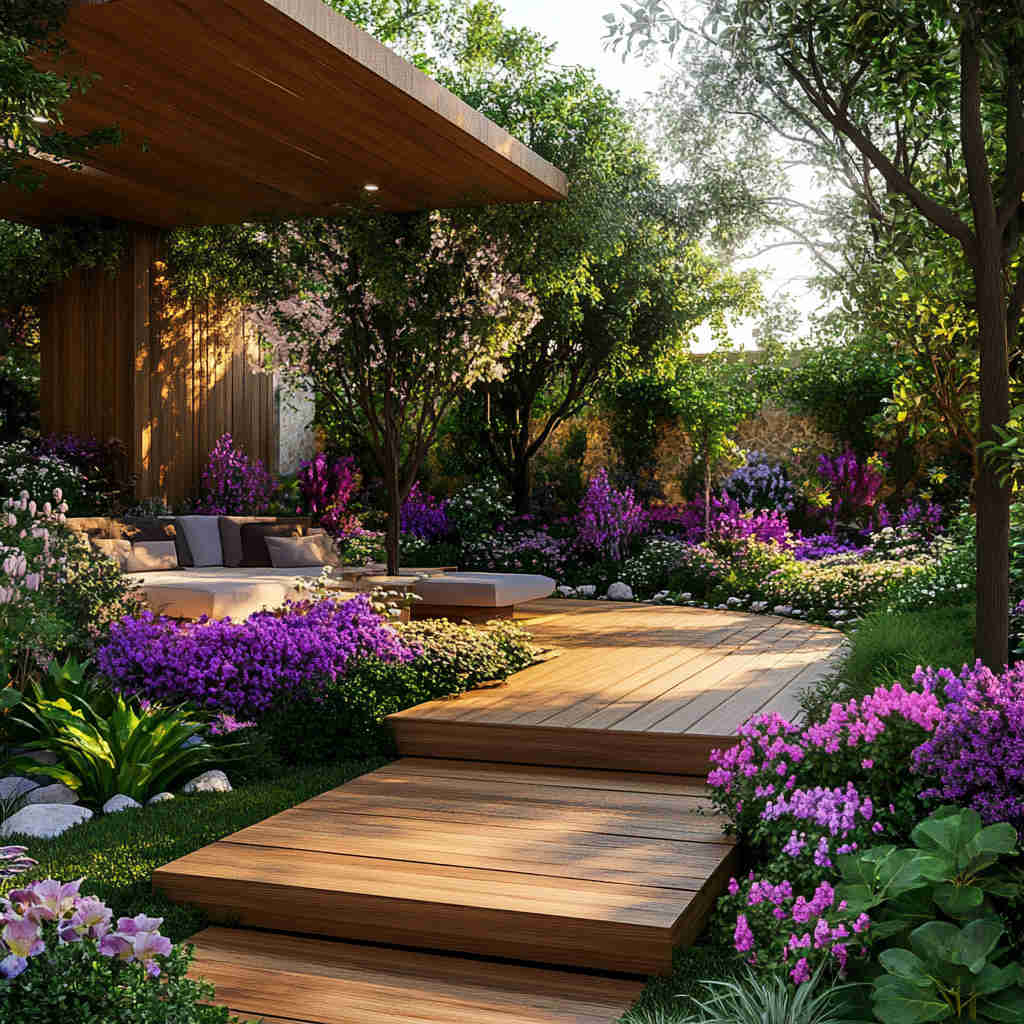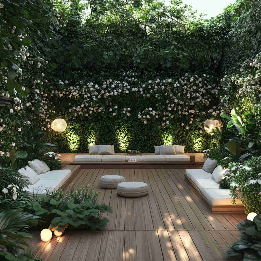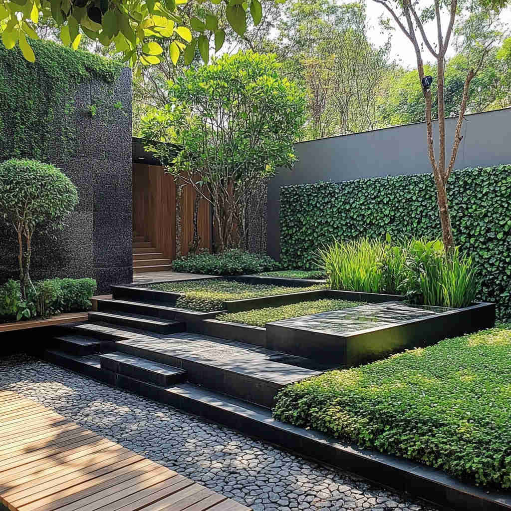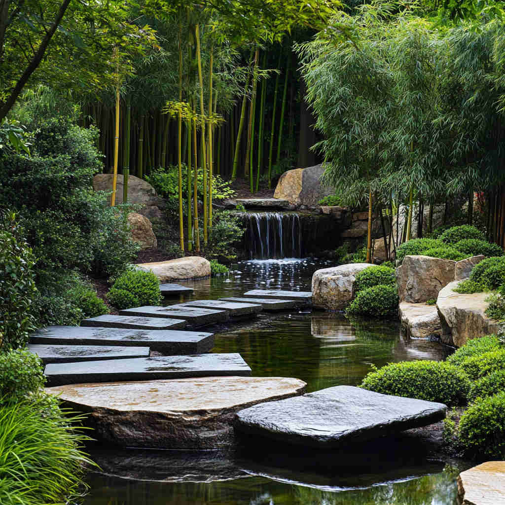 - Zen-Inspired Retreats: Gravel paths, bonsai trees, and stone lanterns, highlighting peaceful Japanese-inspired designs.
