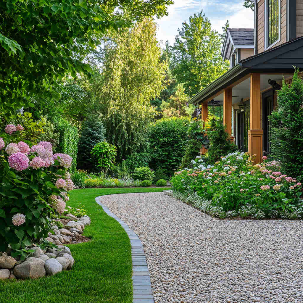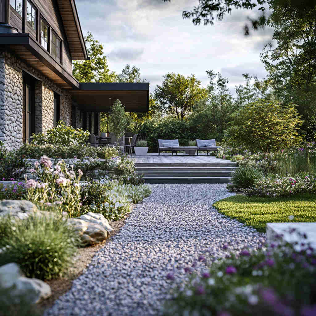 - Natural and Crafted Details: Elements like cascading waterfalls, blooming perennials, gravel pathways, or sunset-lit lawns, emphasizing harmony between nature and design.