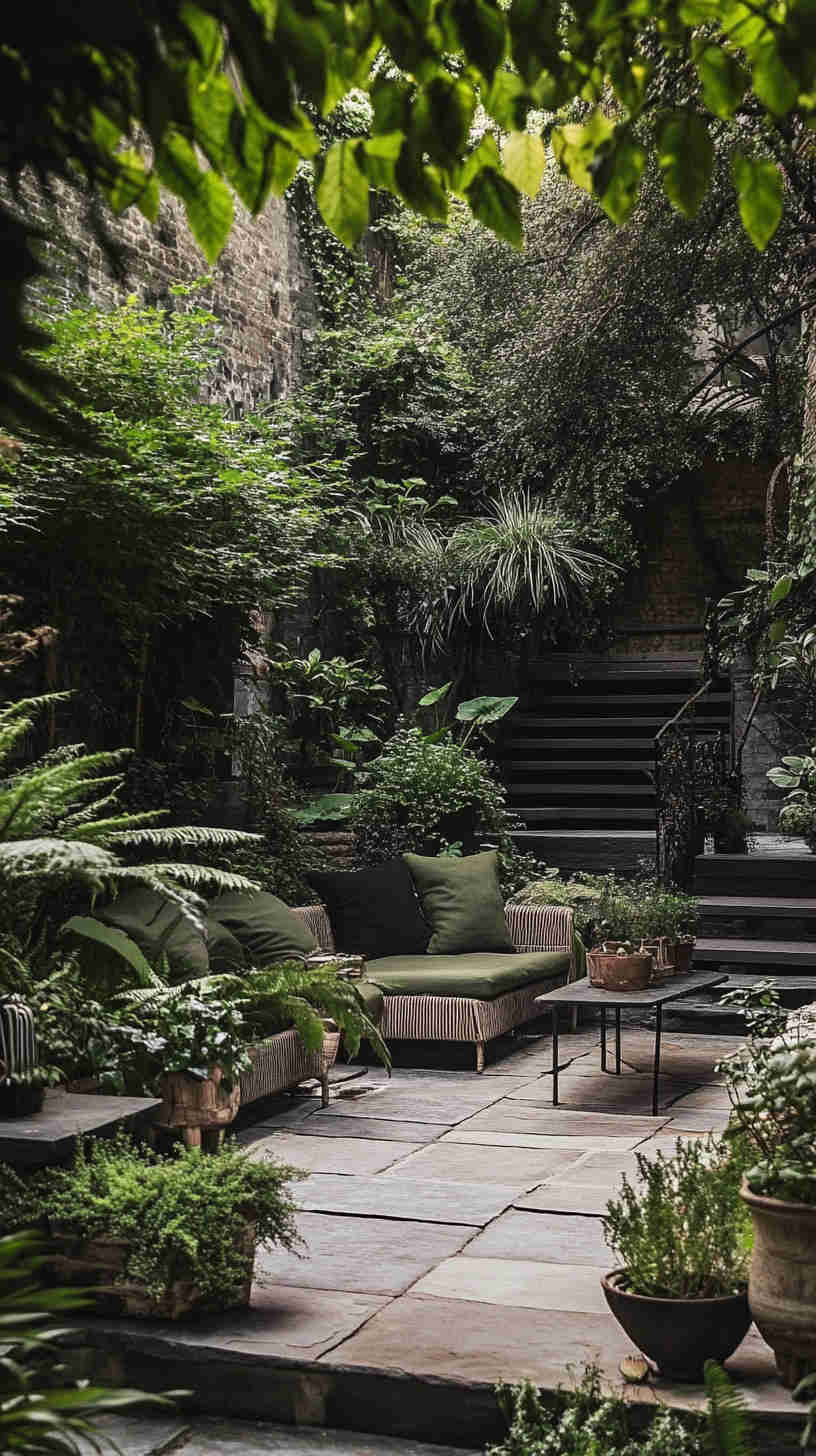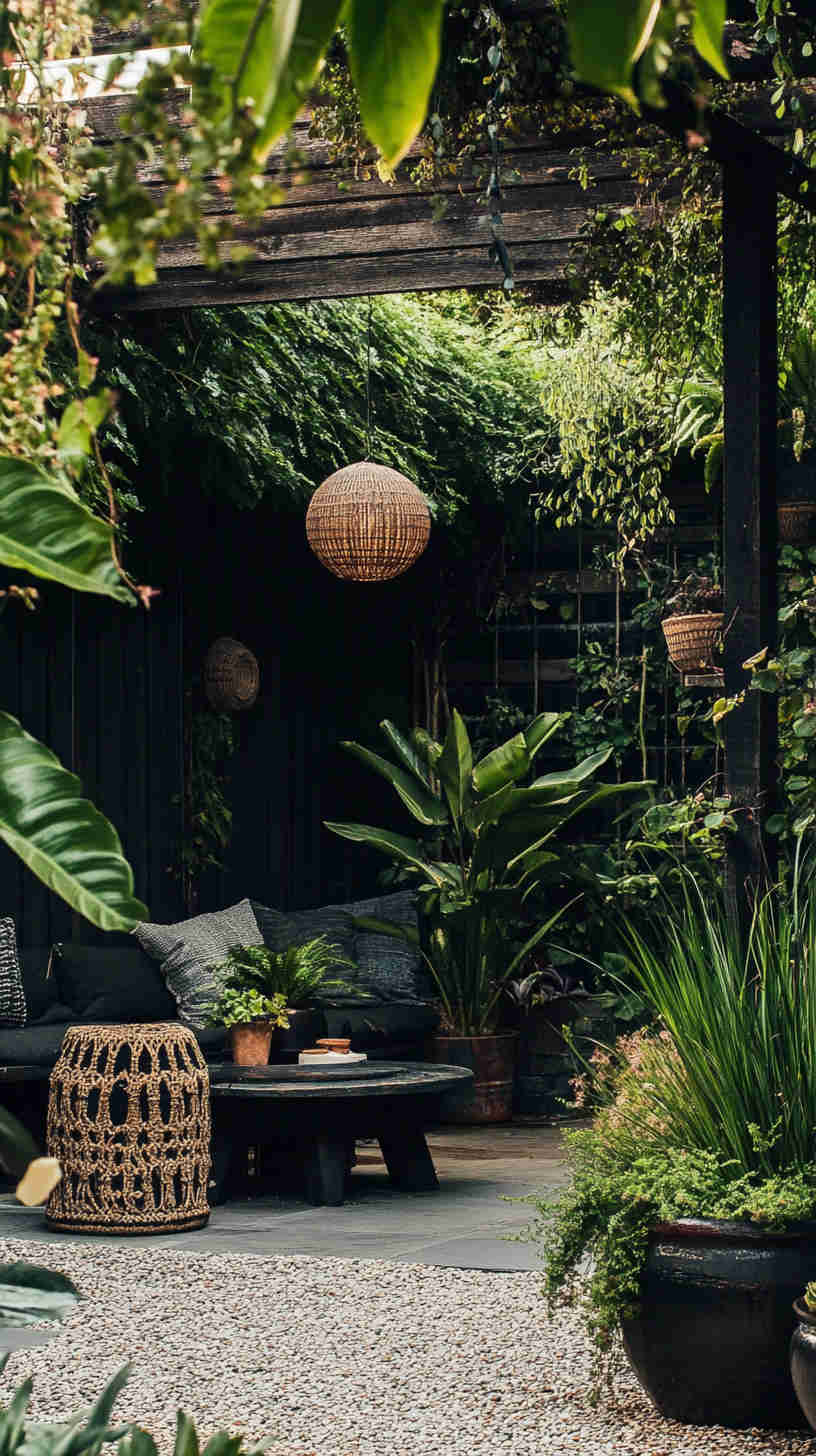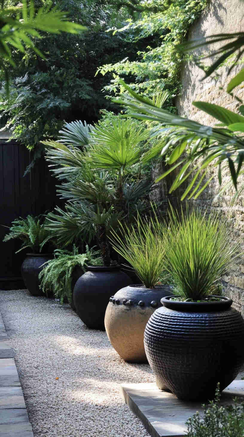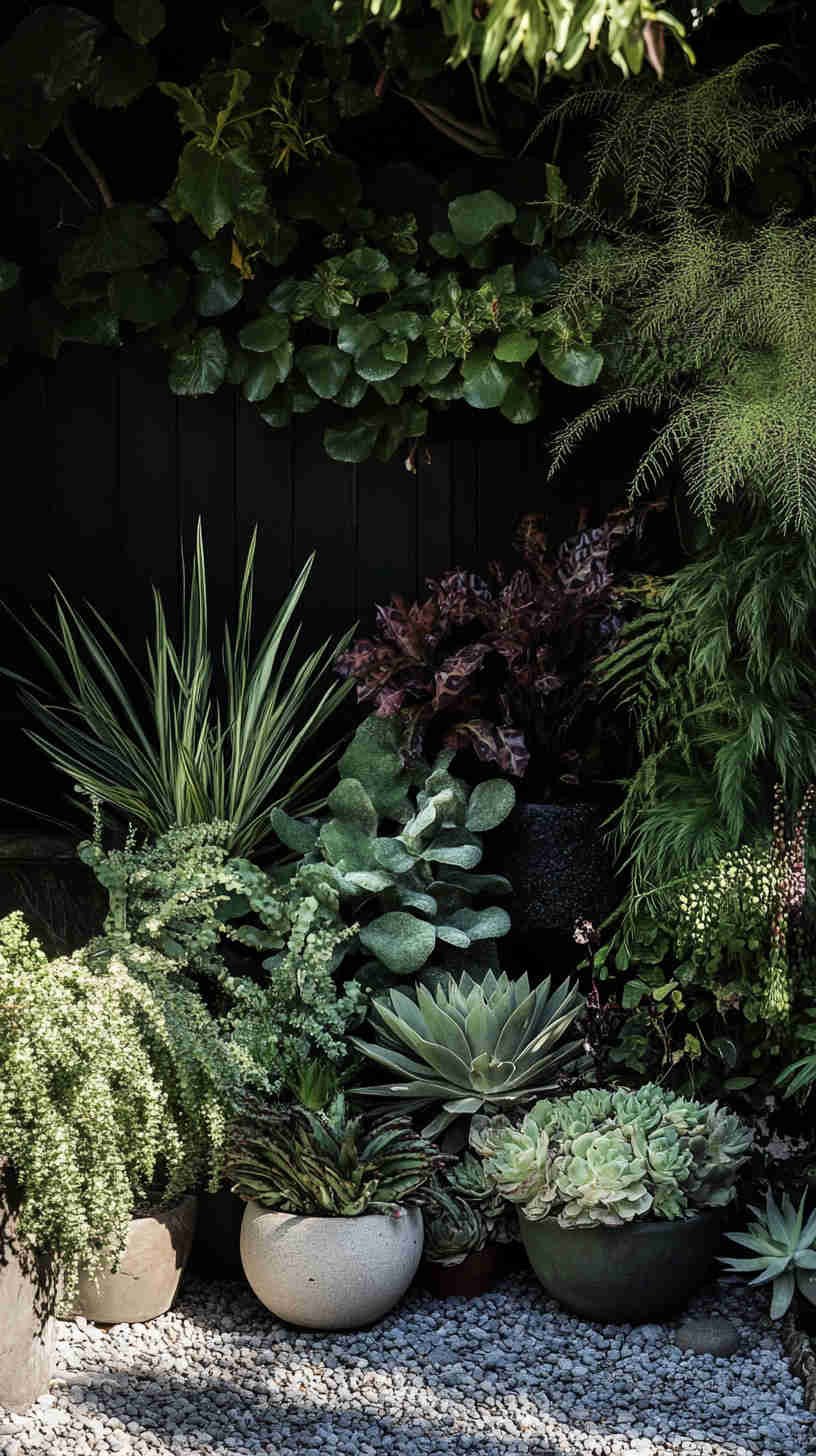 - Minimalist Dark Accents: Clean designs with a single dramatic plant—such as a black aeonium or twisted olive—against a smoky backdrop.