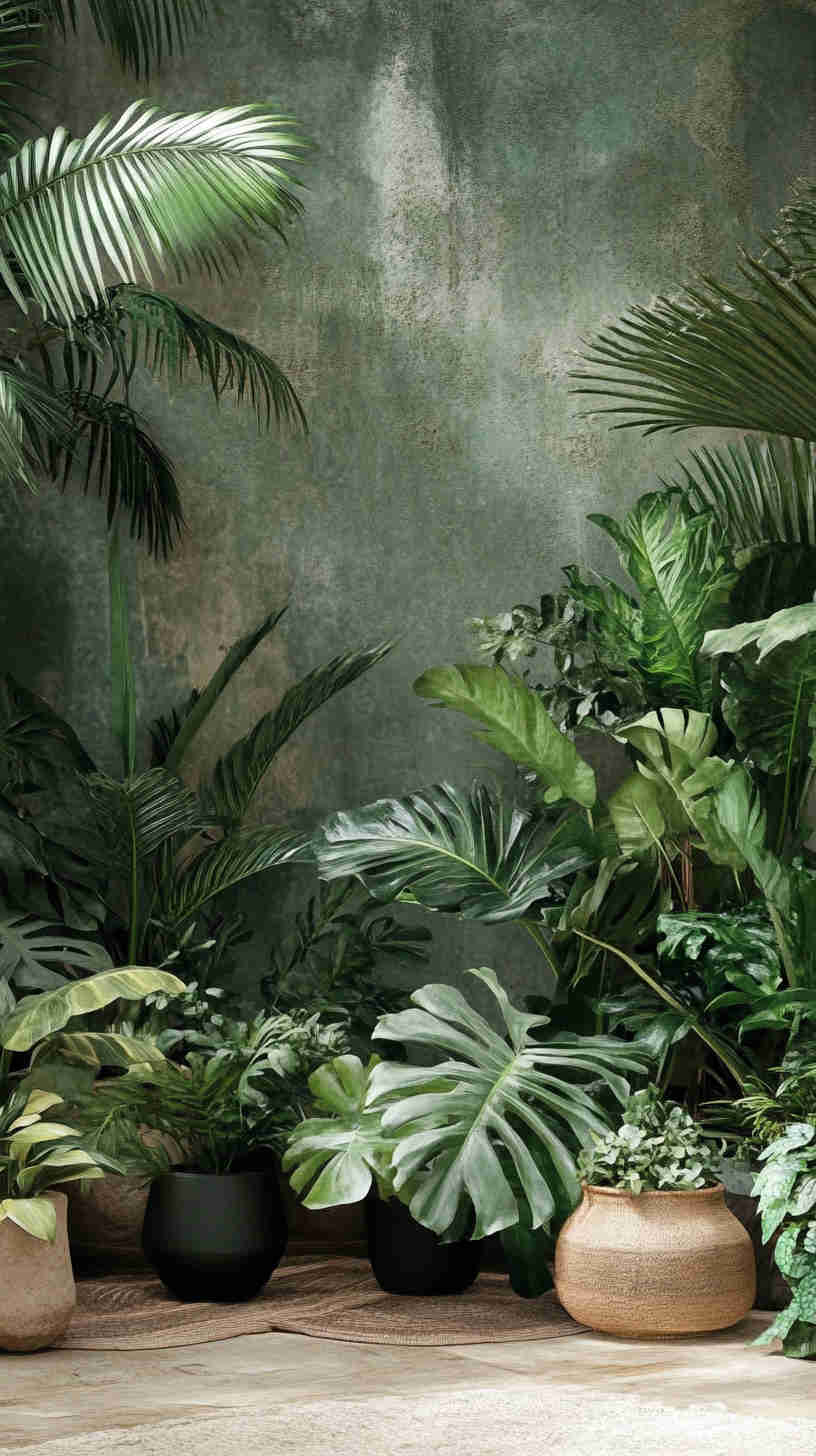 - Textural Foliage: High-definition close-ups of velvet-leafed plants, spiky succulents, and layered ferns, emphasizing tactile richness.