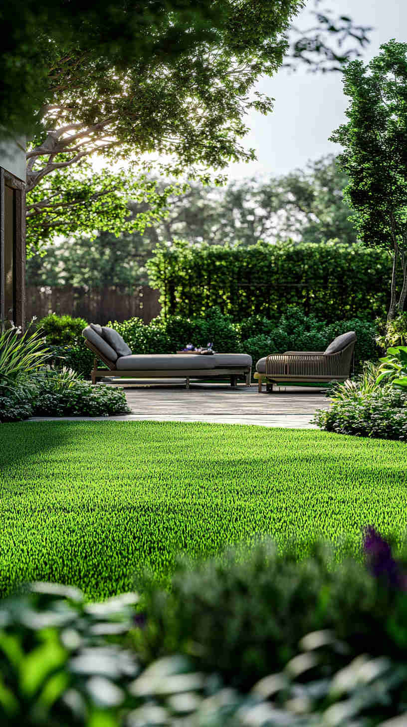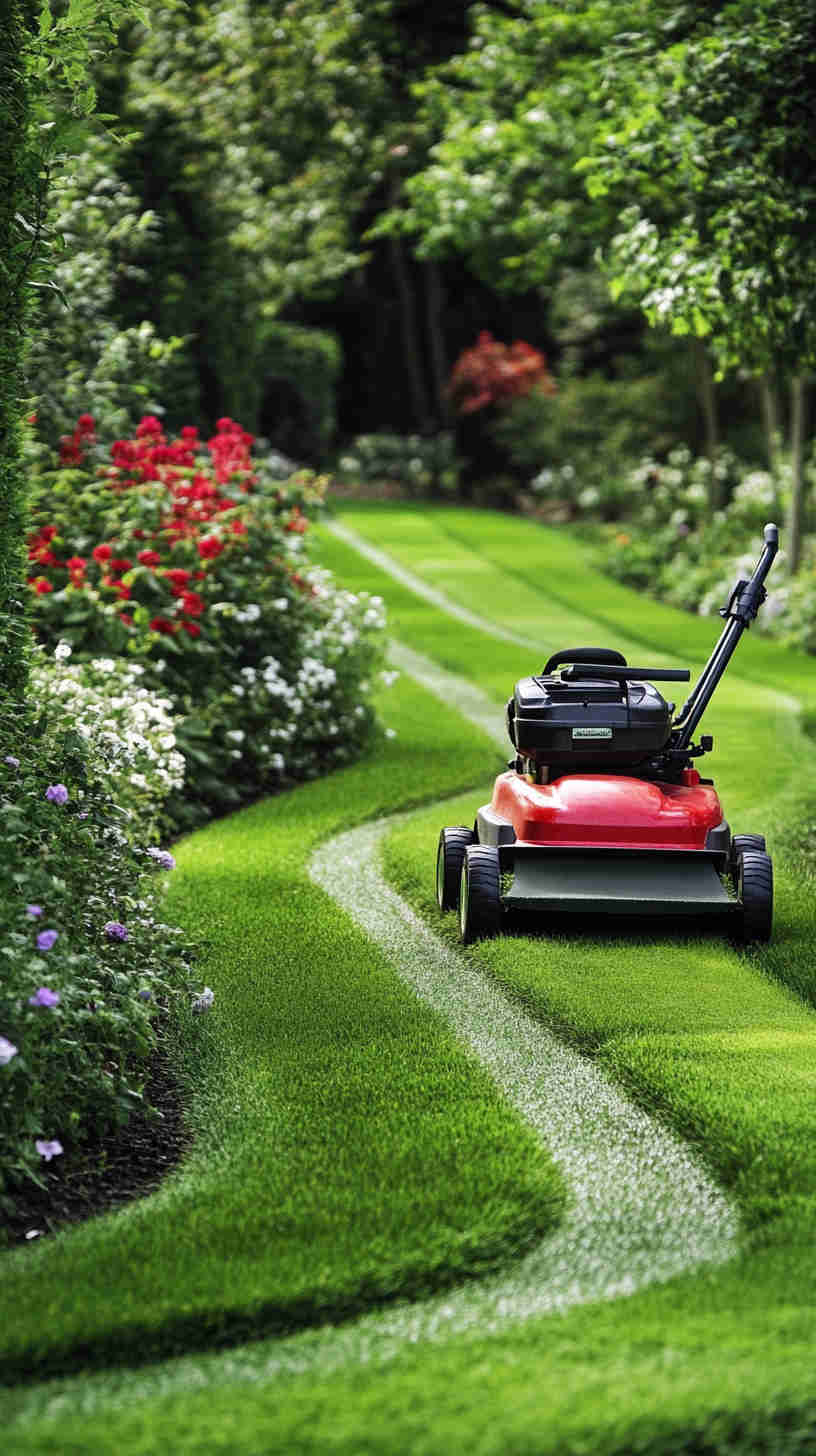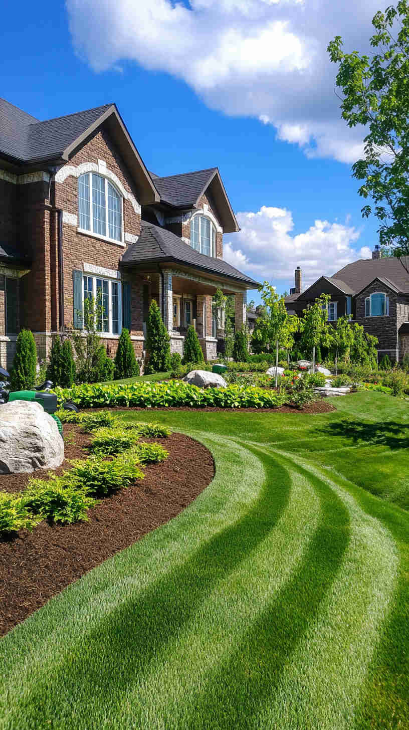 - Manicured Lawn Stripes: Vibrant green lawns with precise mower patterns, set against sunny backyards or elegant estates, evoking meticulous care.