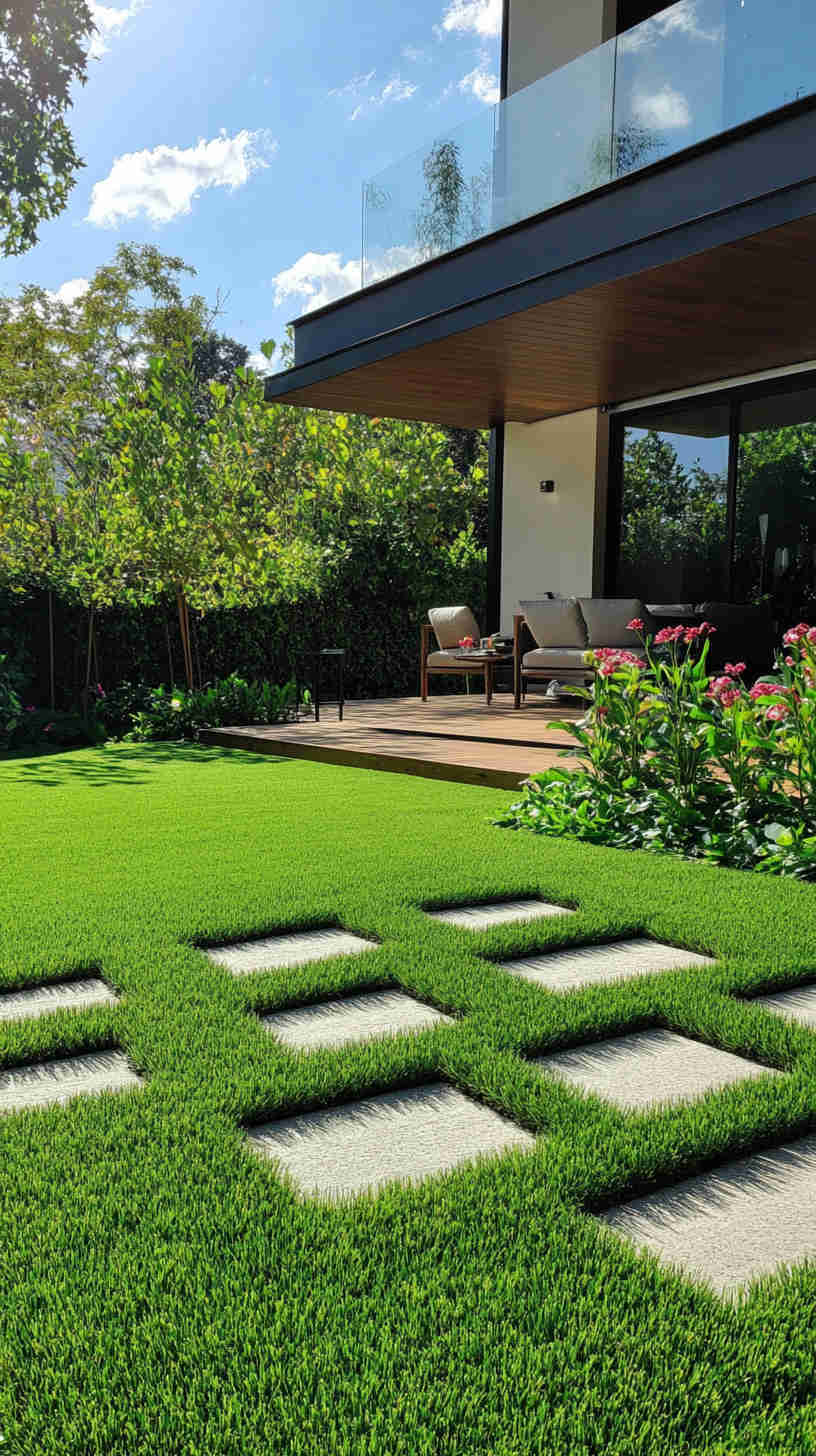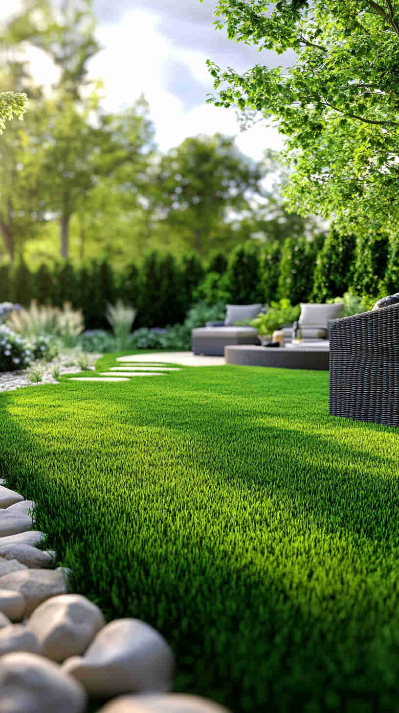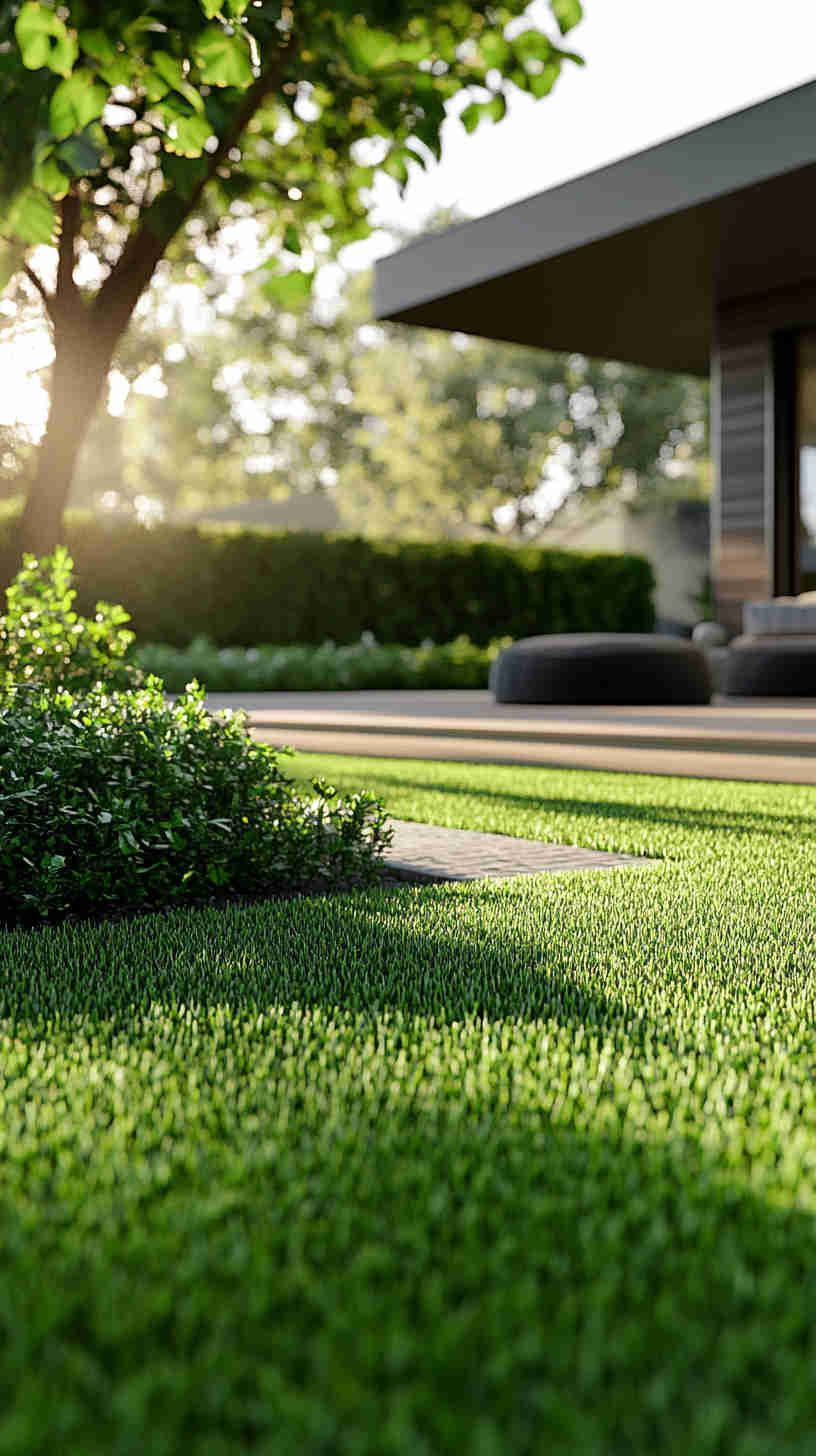 - Manicured Lawn Stripes: Vibrant green lawns with precise mower patterns, set against sunny backyards or elegant estates, evoking meticulous care.
