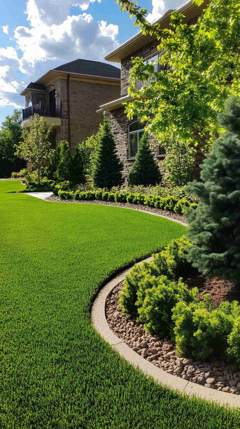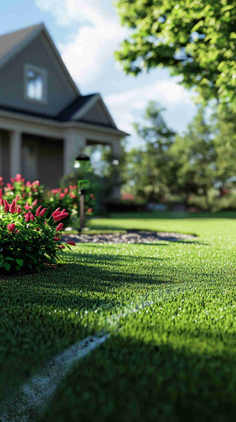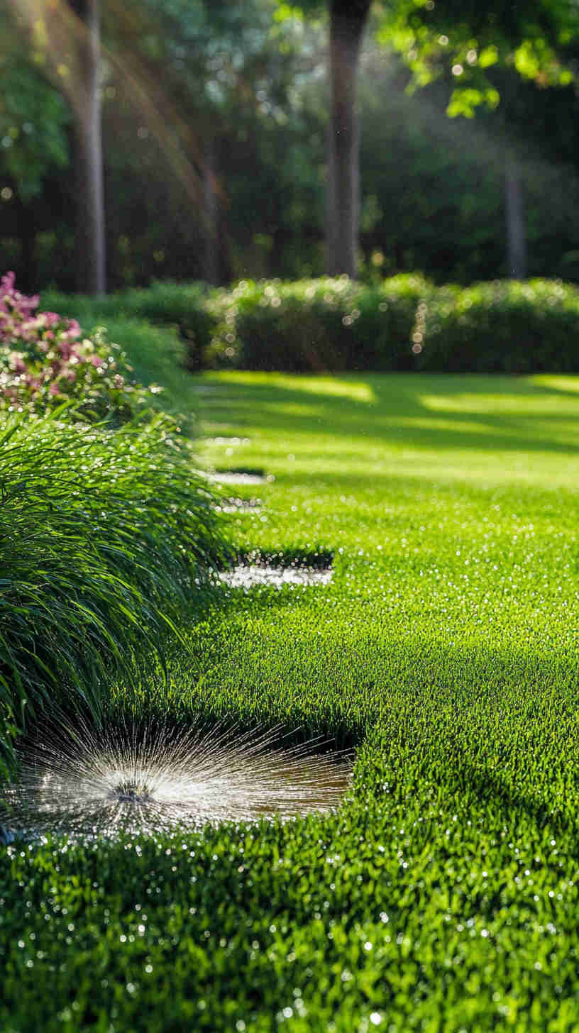 - Maintenance Details: Elements like sprinkler systems in action, neatly trimmed hedges, or seasonal plantings, emphasizing the year-round dedication to lawn perfection.