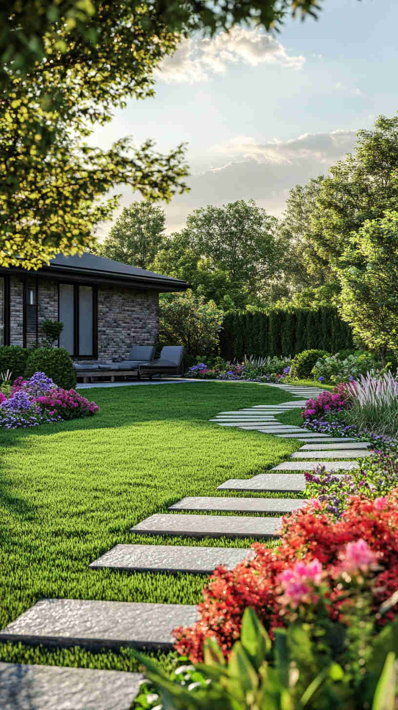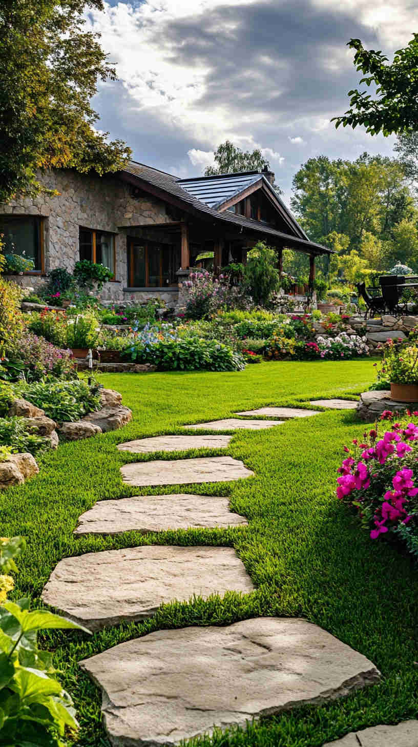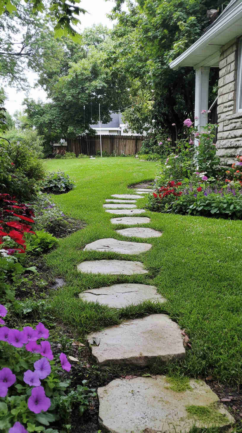 - Rustic Backyard Patios: Neatly edged lawns leading to cozy patios with stone paths or wooden decks, capturing relaxed outdoor living.