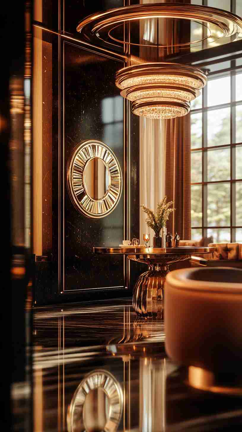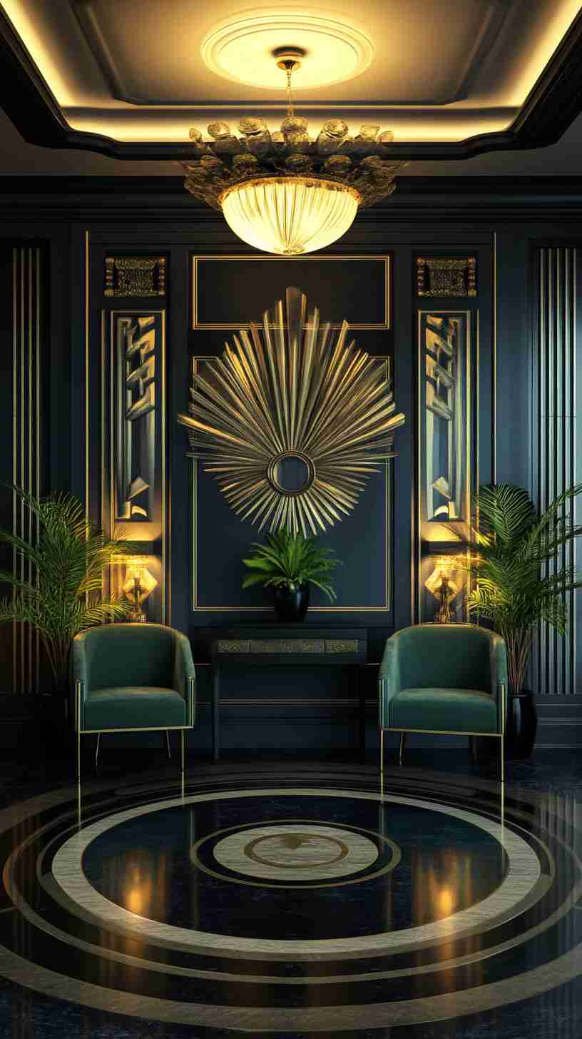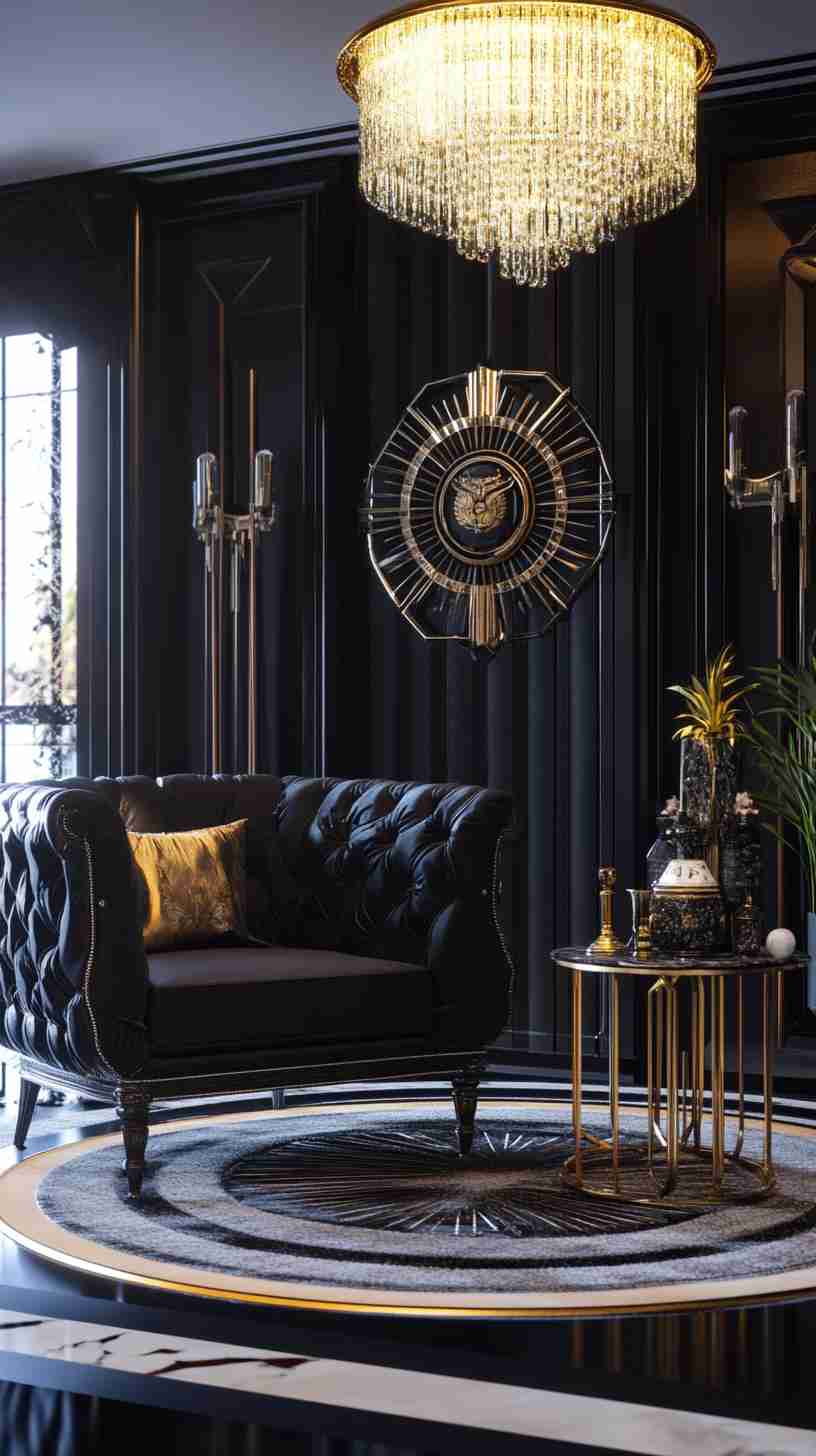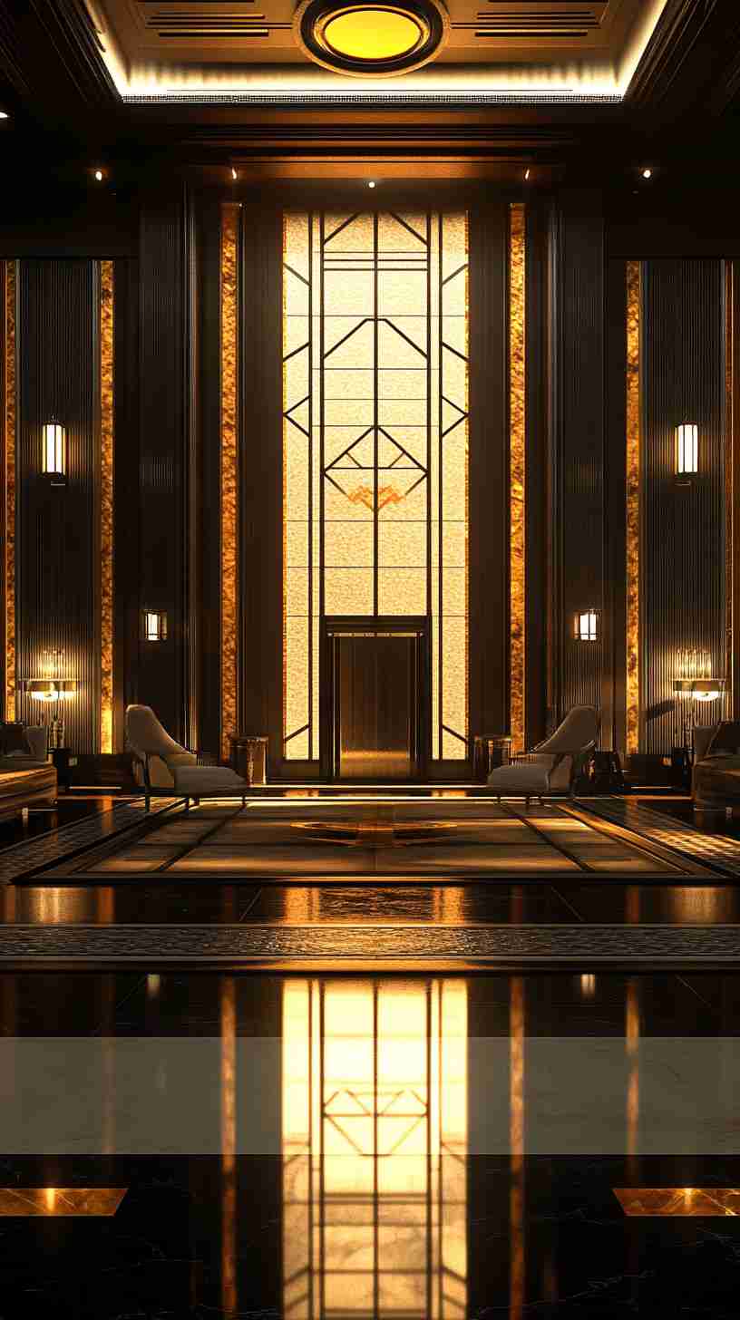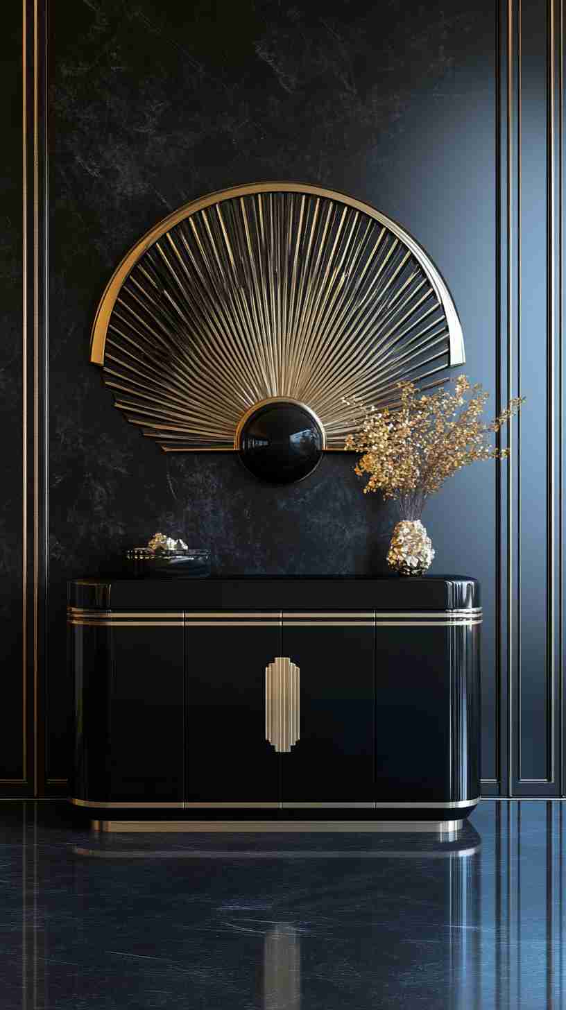 - Luxurious Materials: Inspired by materials like lacquer, chrome, and exotic woods, Art Deco designs often incorporate sleek, reflective surfaces.
