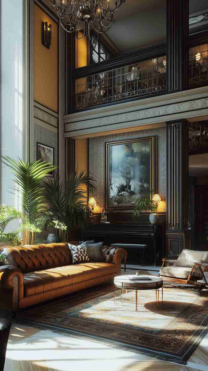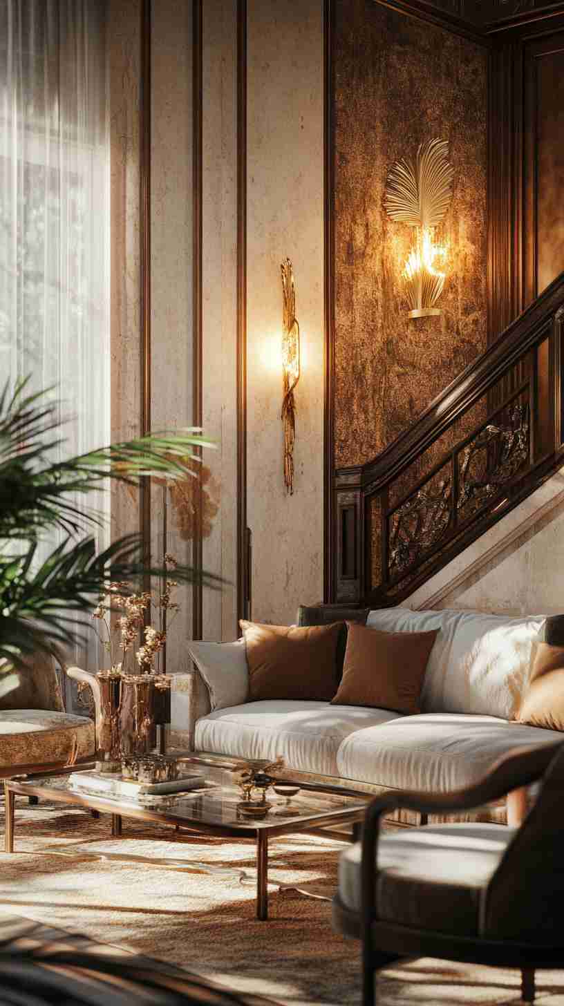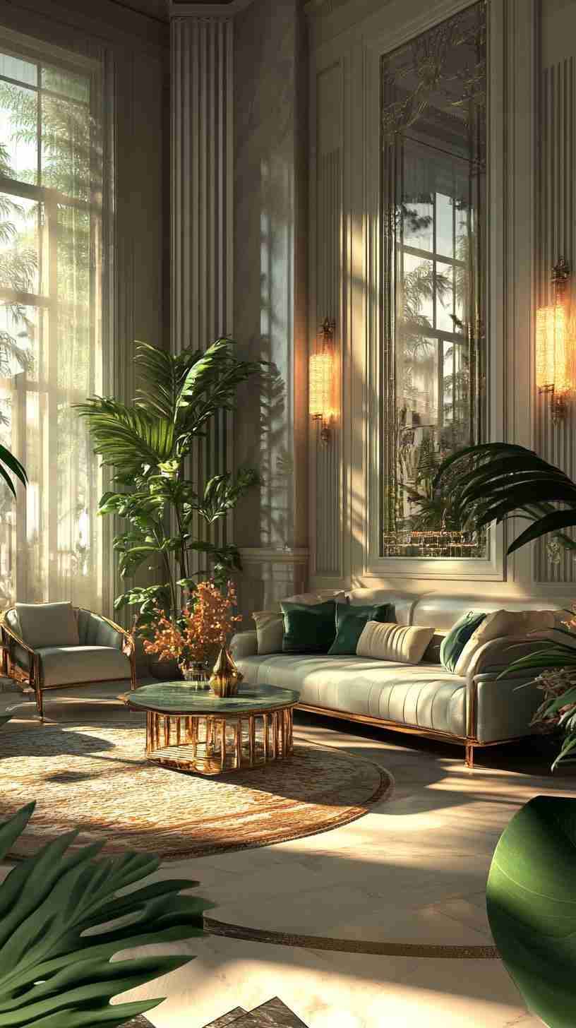 Art Deco wallpapers can redefine the ambiance of your living space, even in a digital format. Here’s how they can elevate different areas of your home: