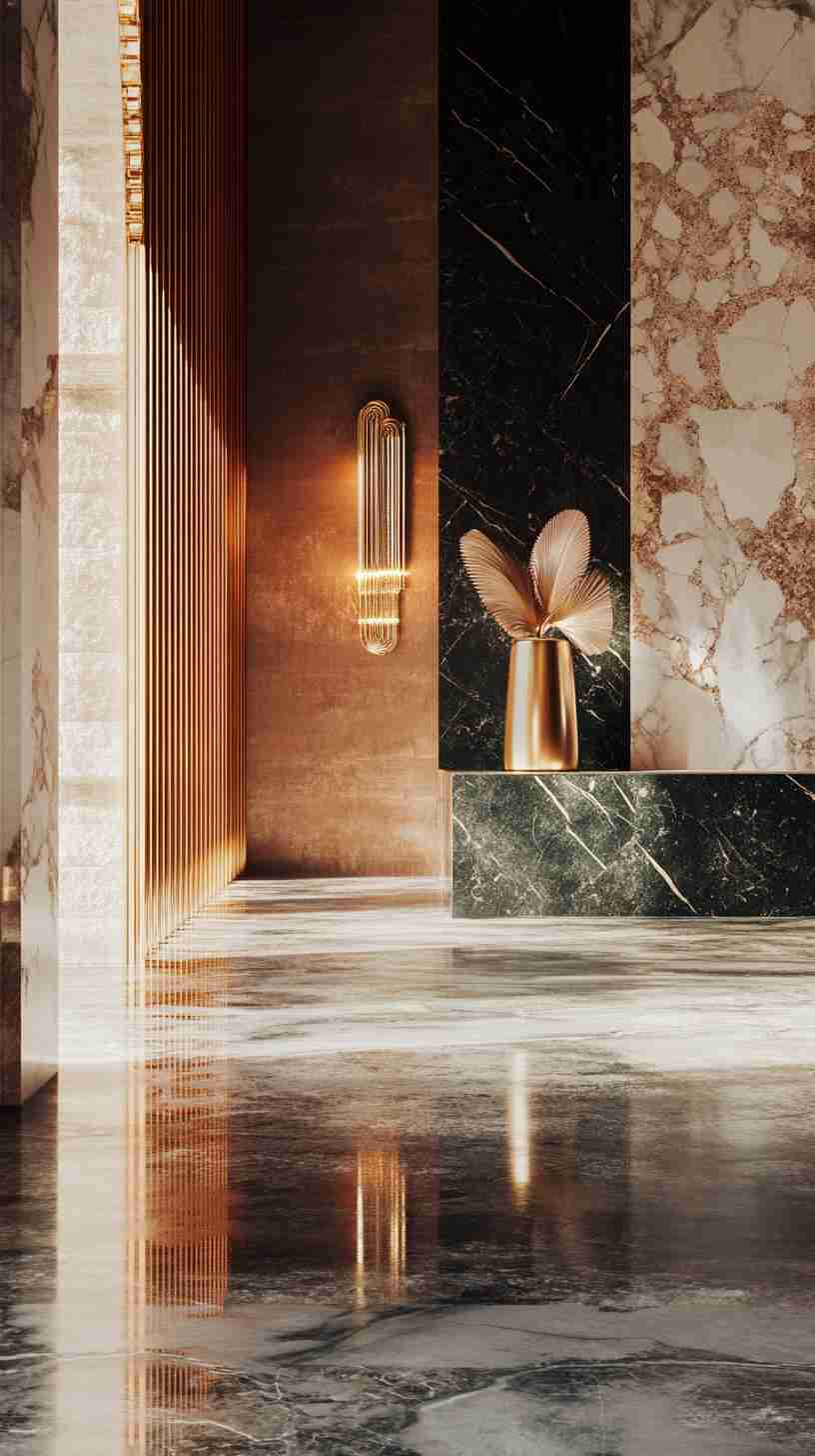 - Metallic Minimalism: For a subtler take, metallic minimalism uses simple geometric shapes in gold, silver, or bronze against neutral backgrounds like cream or charcoal.
