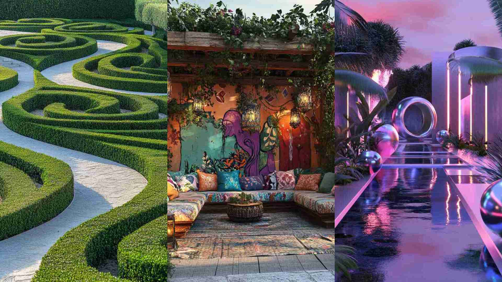 - English Cottage Gardens: Overflowing with roses, lavender, and ivy, these designs exude romantic charm and rustic elegance.