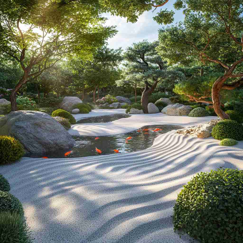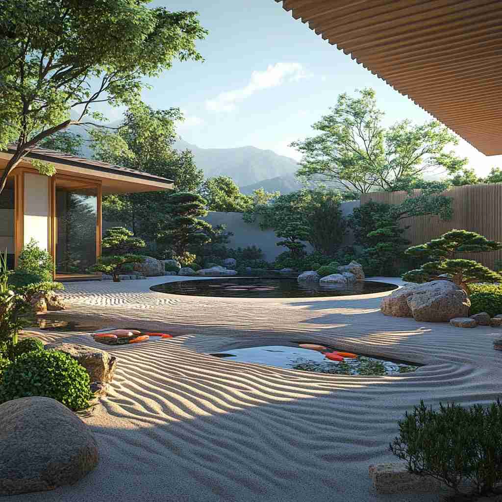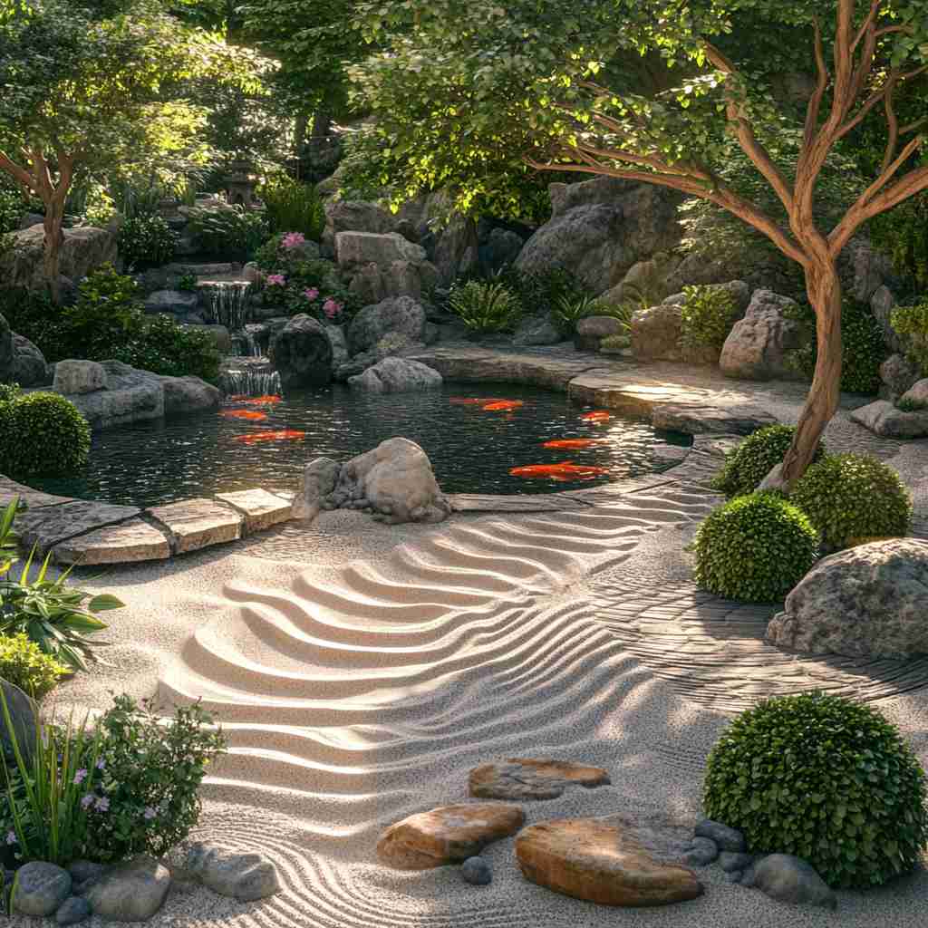 - Serene Water Features: Ponds, fountains, and streams bring a calming, reflective quality to the designs.