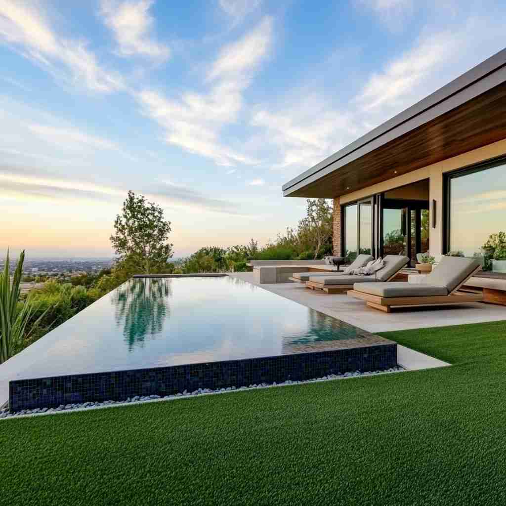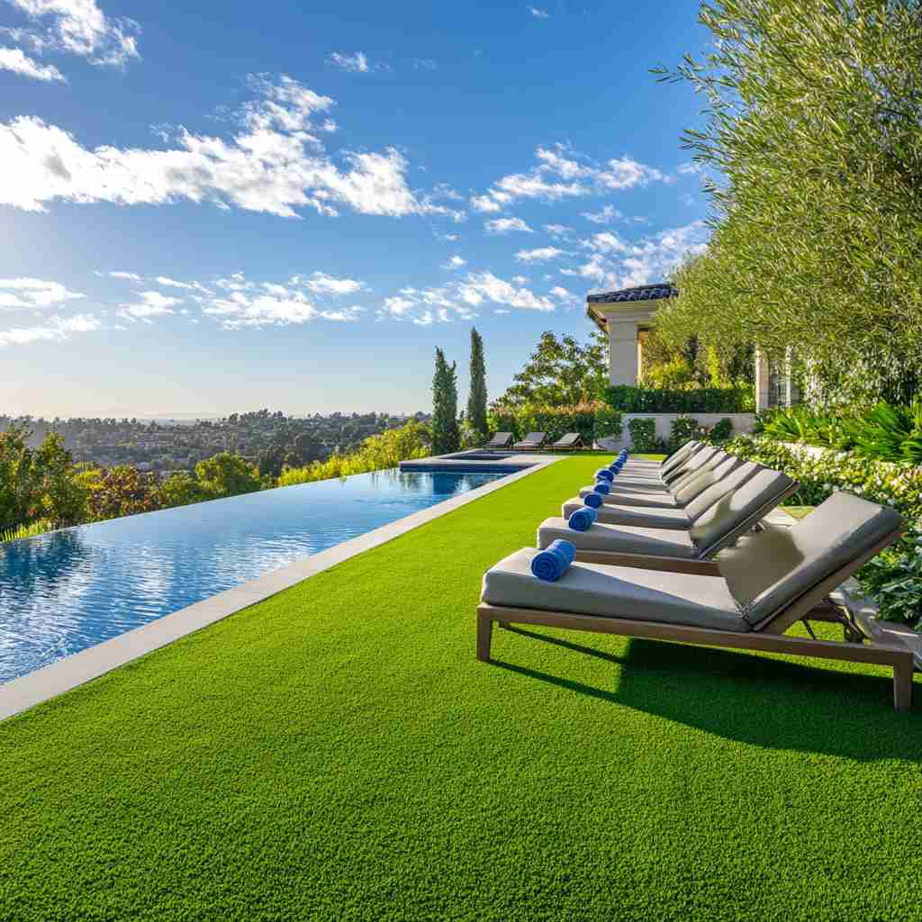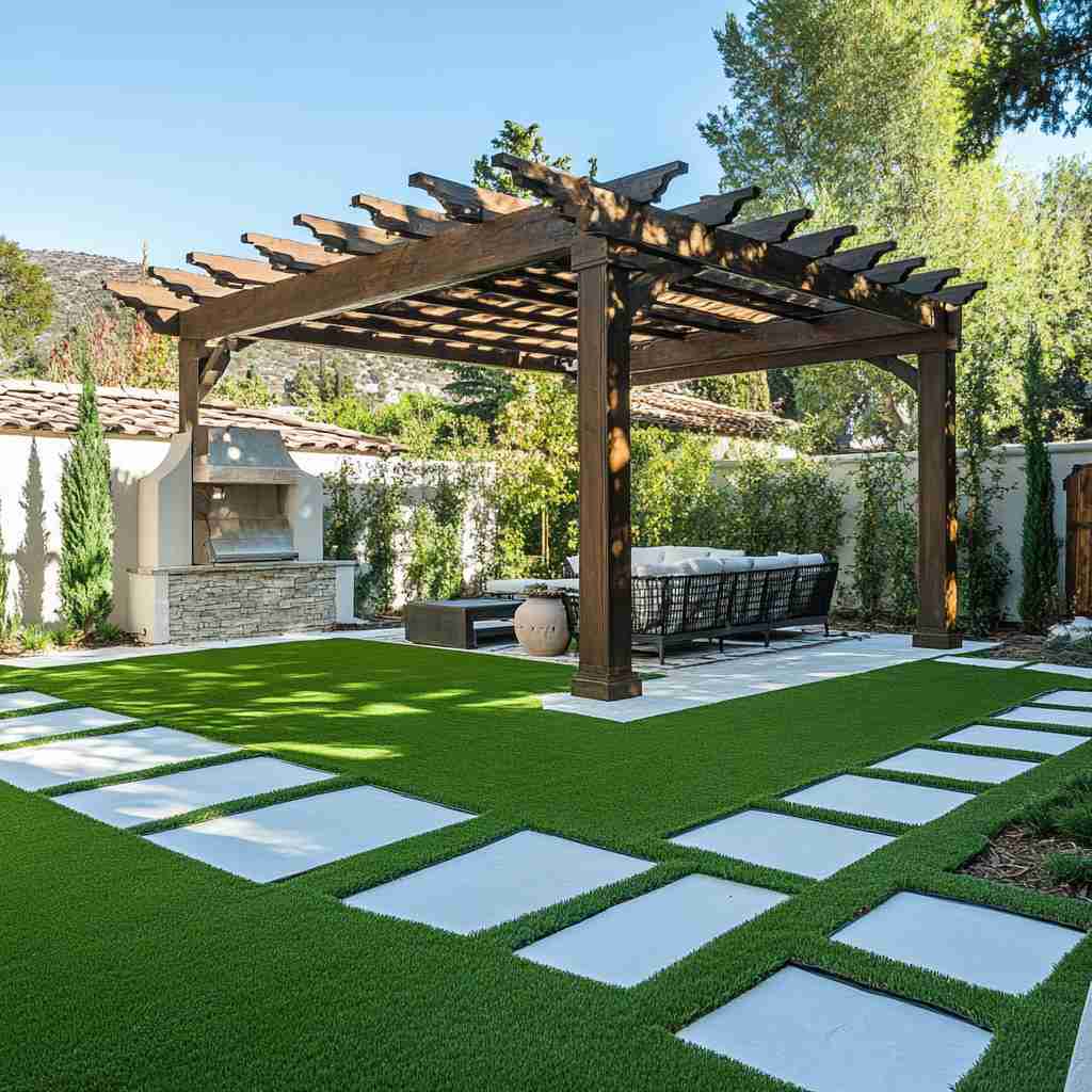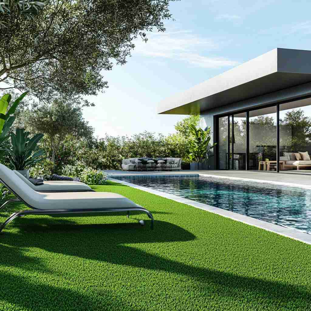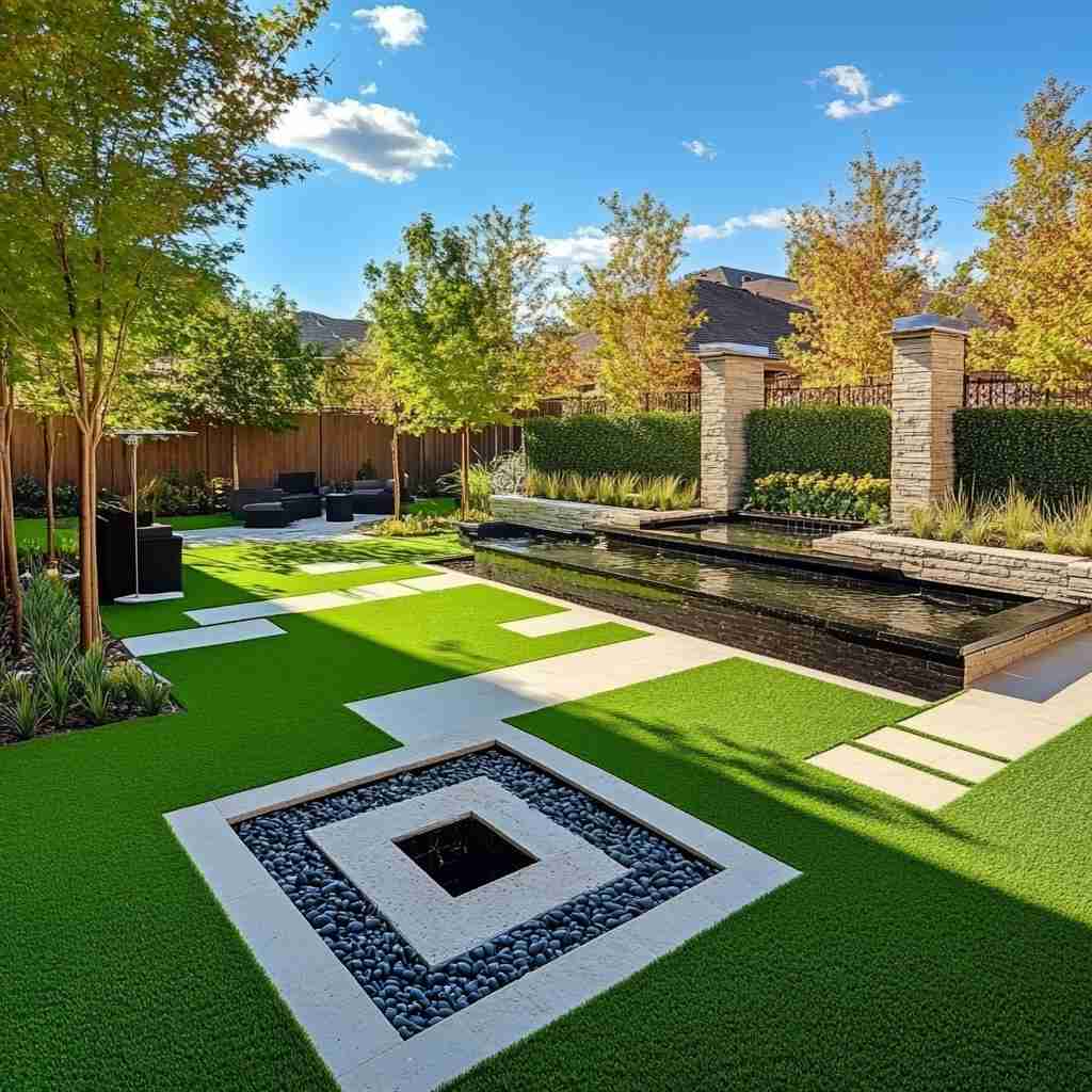 - Tropical Backyards: Artificial grass paired with palm trees, colorful planters, or water features for an exotic, resort-like vibe.