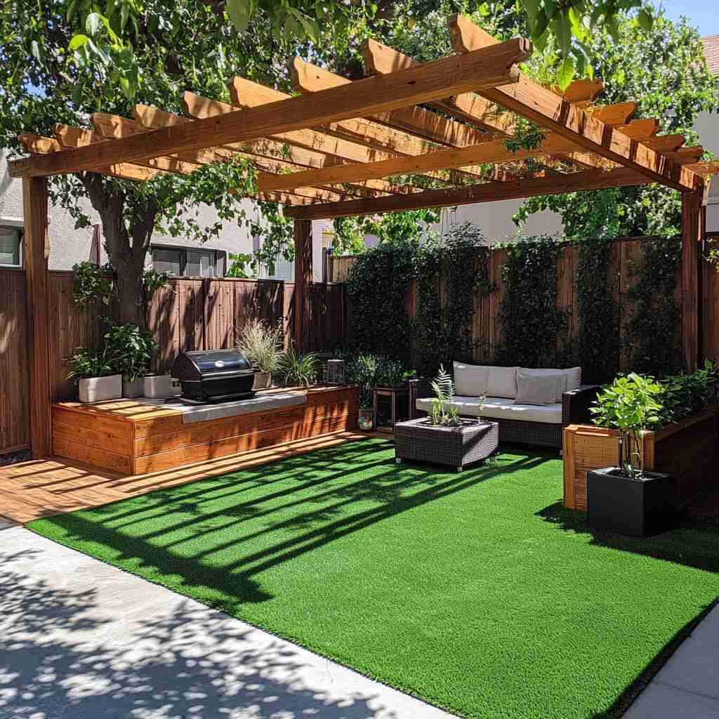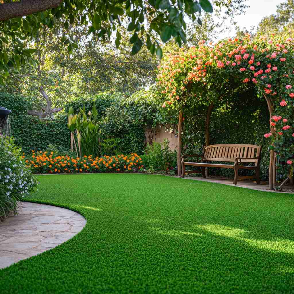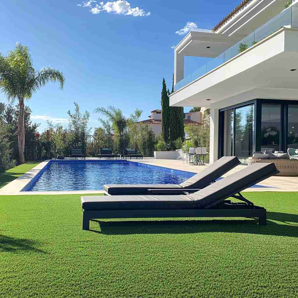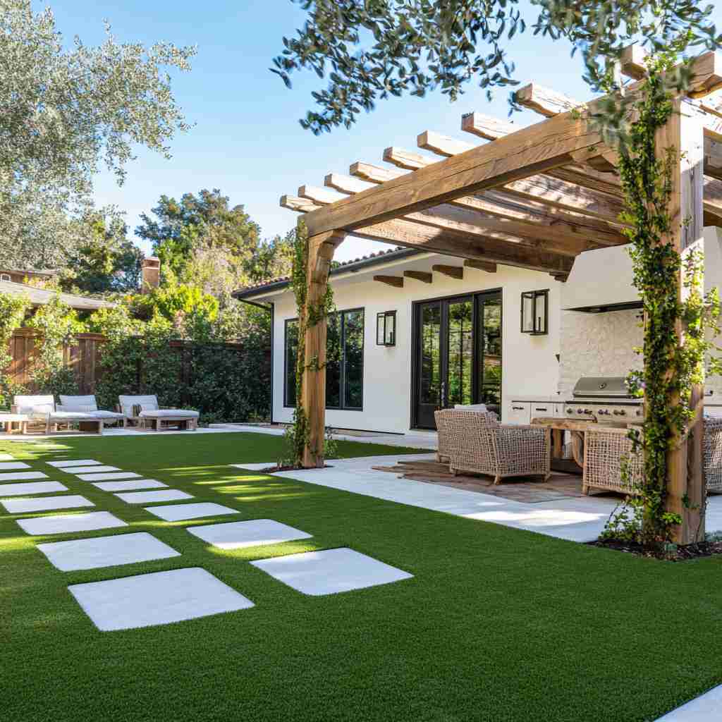 - Tropical Backyards: Artificial grass paired with palm trees, colorful planters, or water features for an exotic, resort-like vibe.
