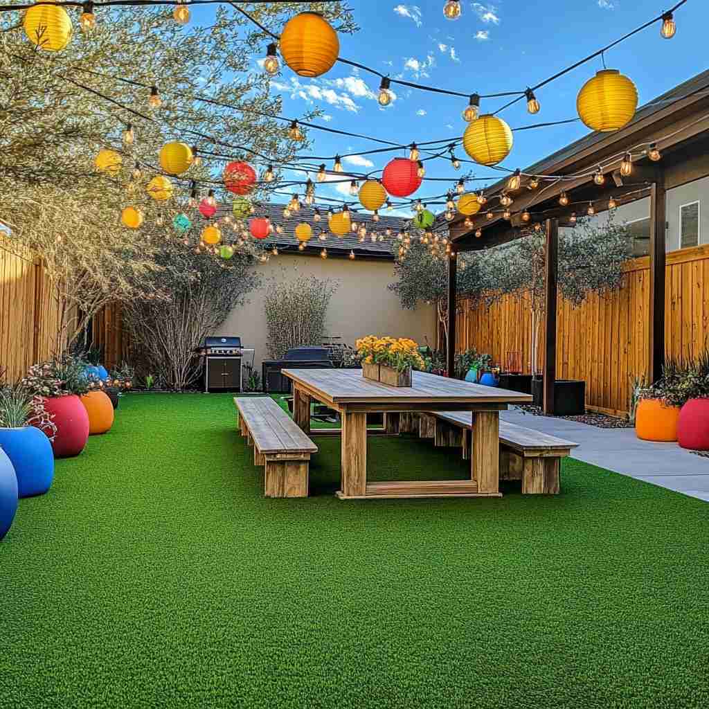 - Family-Friendly Play Areas: Vibrant lawns with swings, slides, or pet-friendly spaces, perfect for lively, functional backyards.