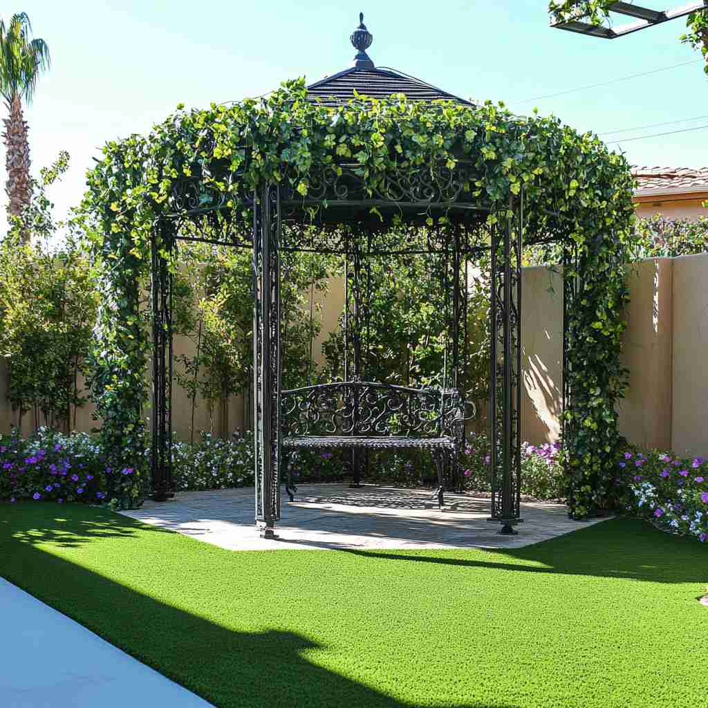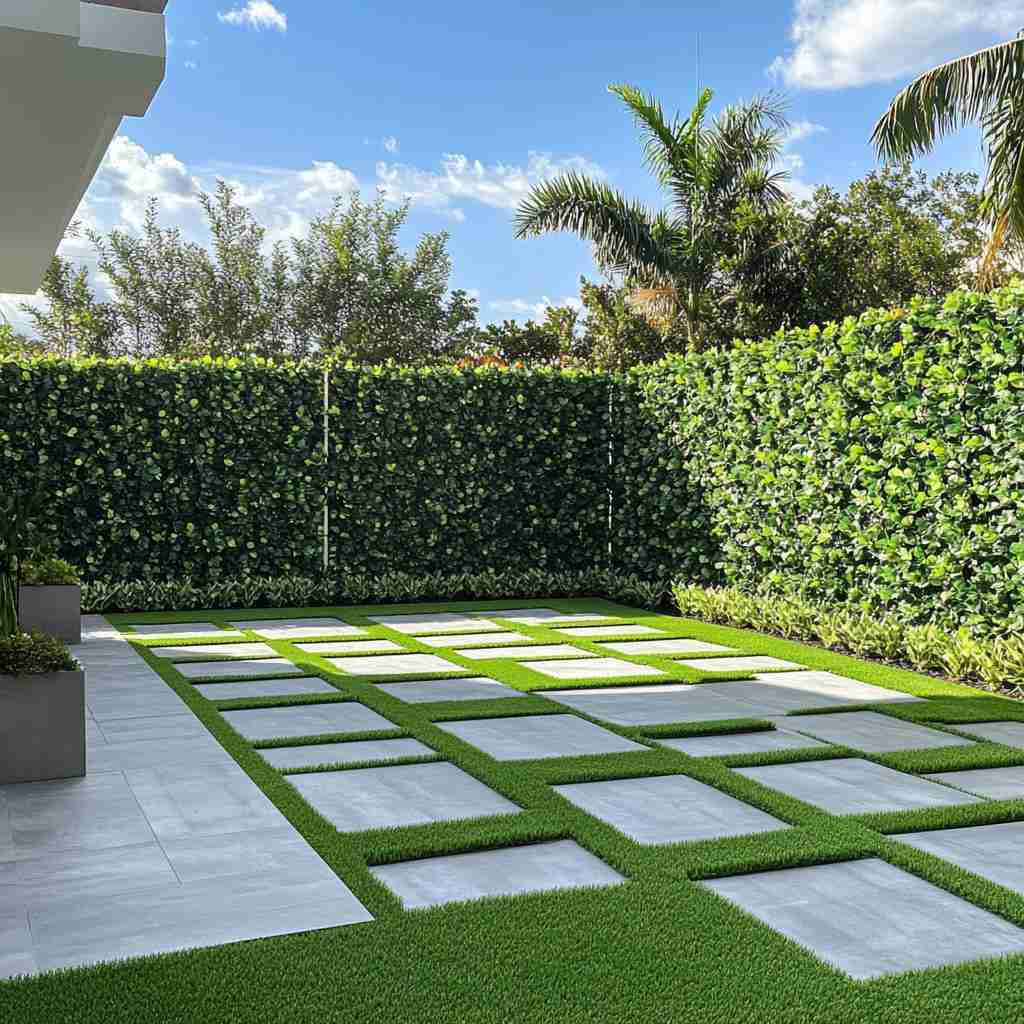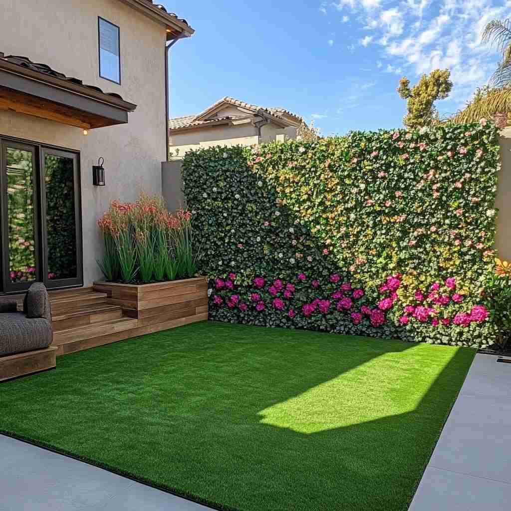 - Tropical Escapes: Artificial grass paired with palm trees, colorful flowers, or water features for a vibrant, resort-like vibe.