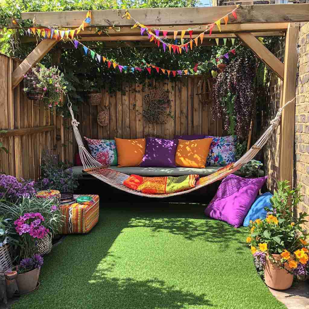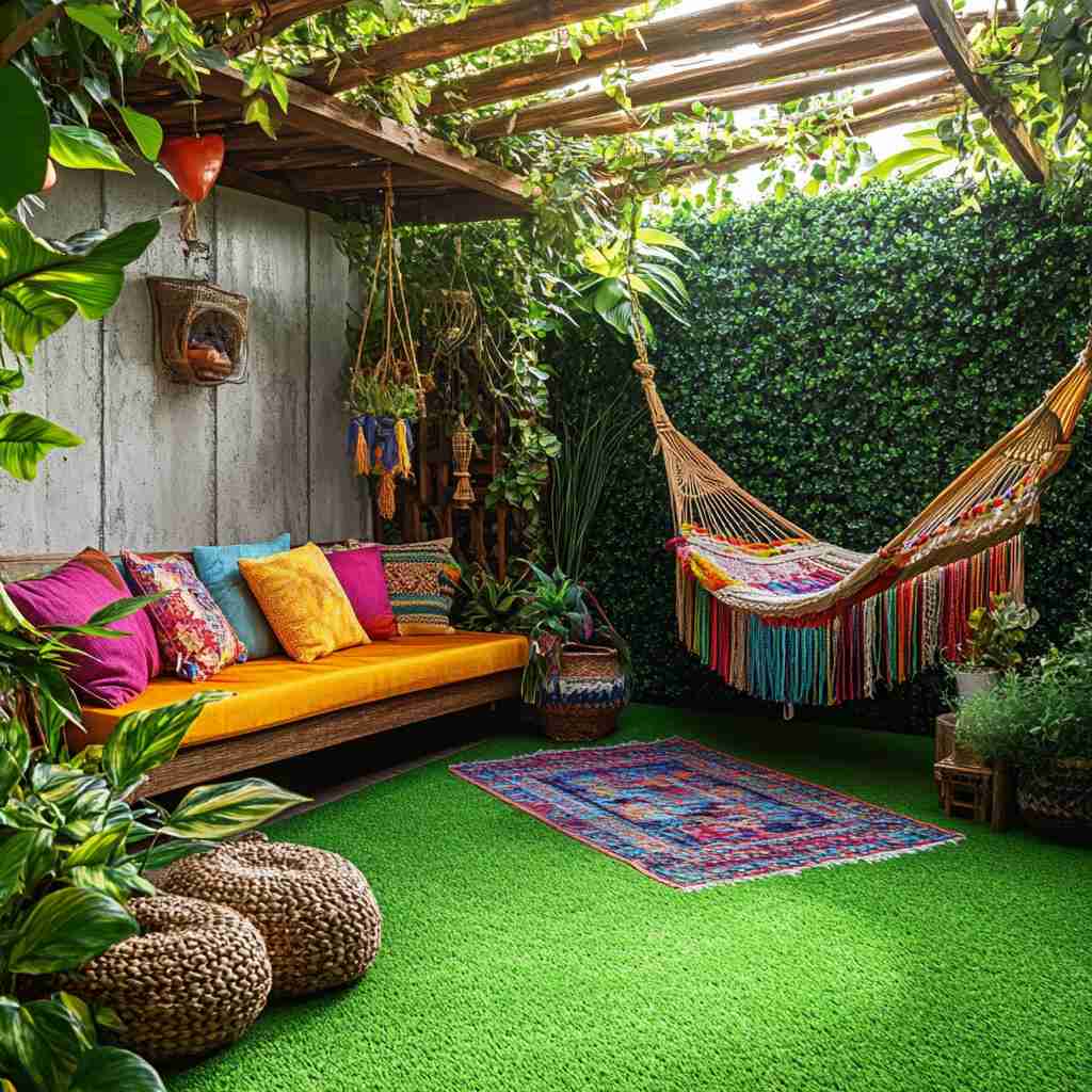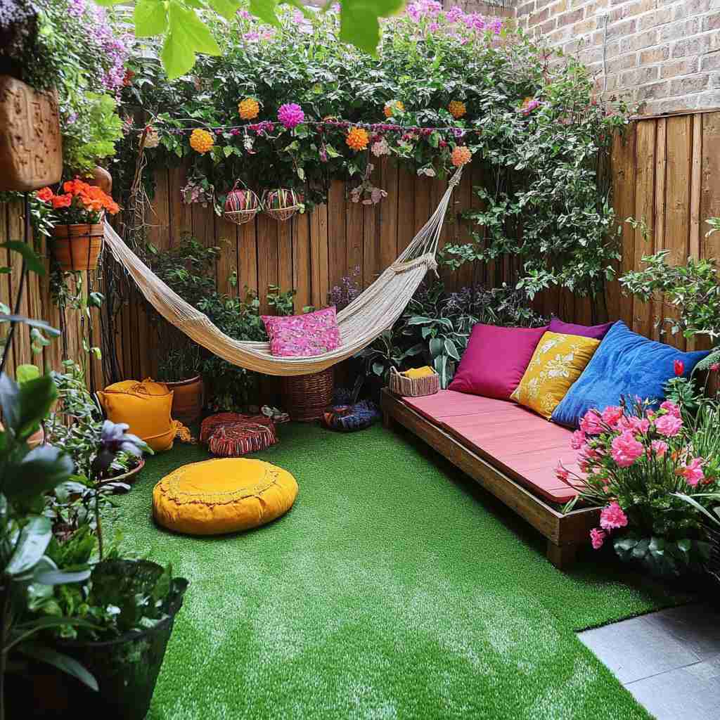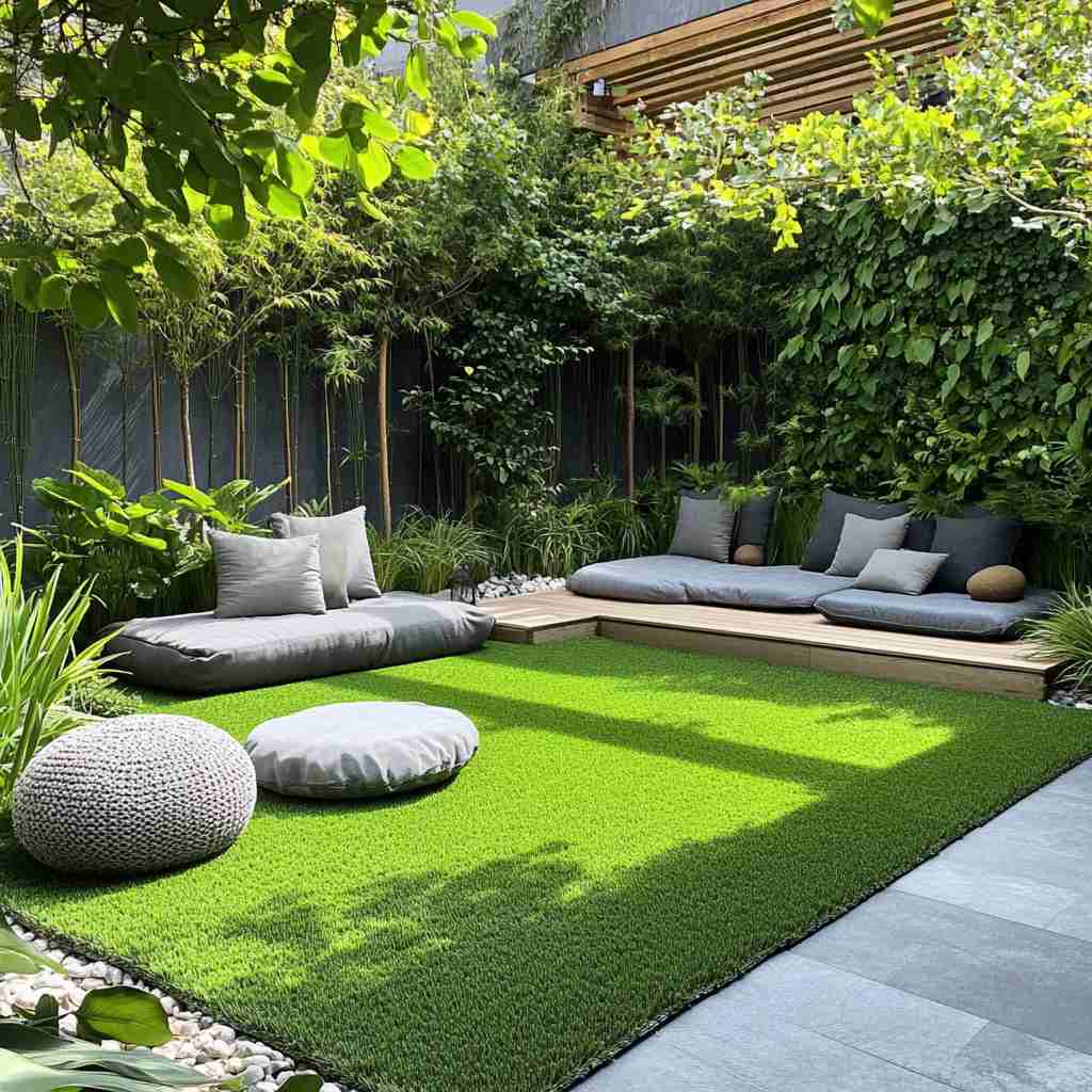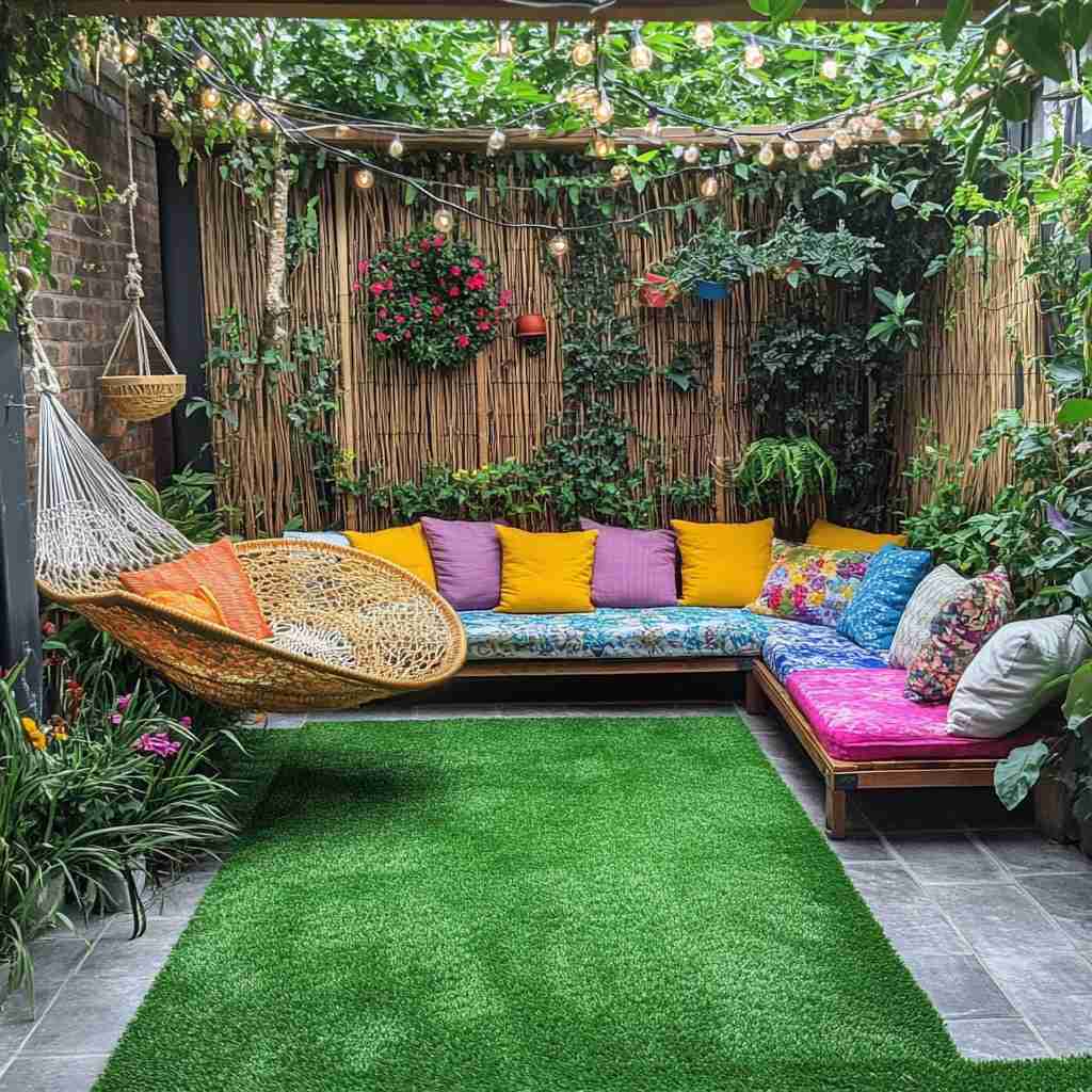 - Cozy Garden Nooks: Designs featuring artificial turf, string lights, and plush seating for a warm, intimate ambiance.