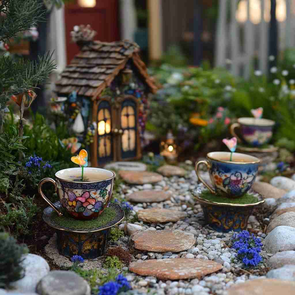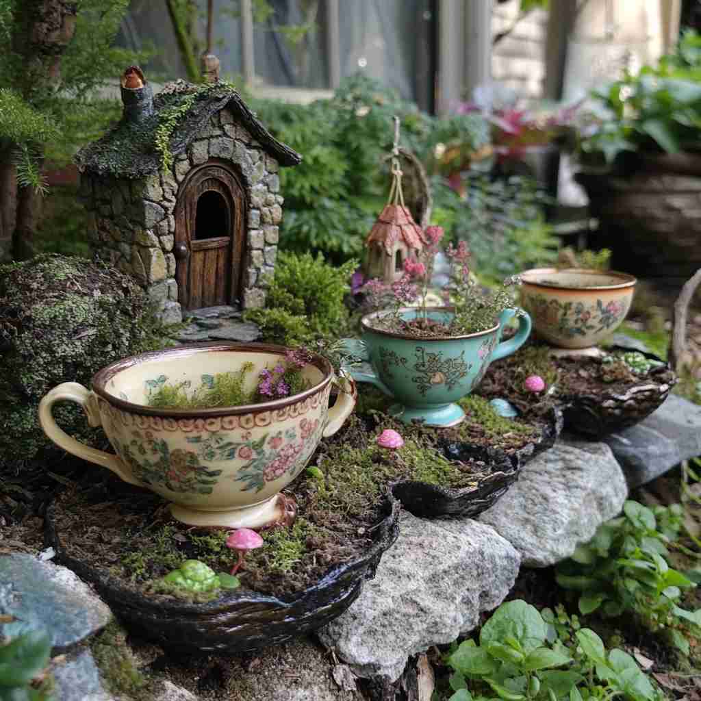 For a whimsical, compact design, use vintage teacups or teapots as the base for your fairy garden. Fill them with soil, add miniature succulents, and decorate with tiny ladders or fairy doors. Place these on a garden table or shelf for a charming display. Wallpapers showcasing teacup gardens in 4K resolution can reveal the delicate textures of porcelain and plants, guiding your color choices.
