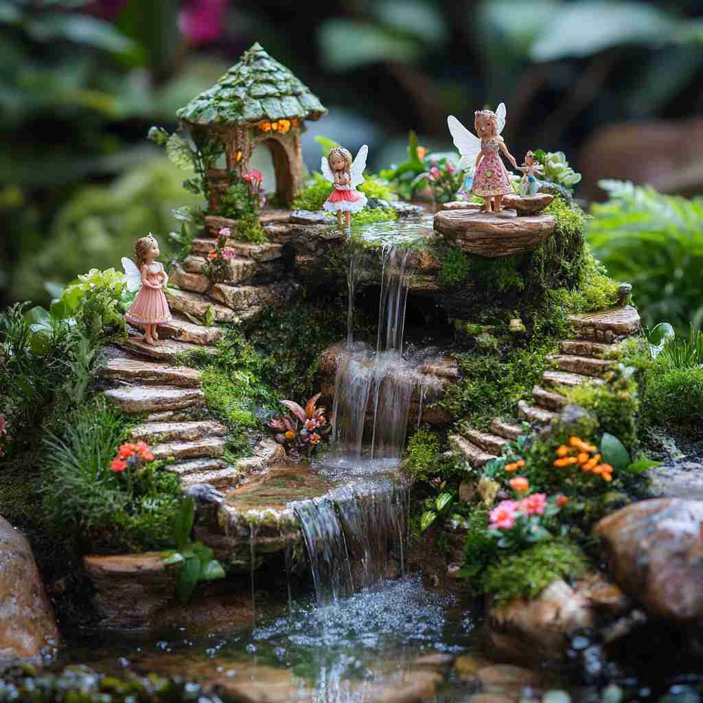 Incorporate a small water feature, like a trickling fountain, into your fairy garden. Surround it with moss, ferns, and smooth river rocks to create a serene oasis. Add a tiny bridge or stepping stones for fairies to cross. A 4K HD wallpaper of a waterfall fairy garden can showcase the reflective water and lush greenery, guiding your design for a tranquil retreat.
