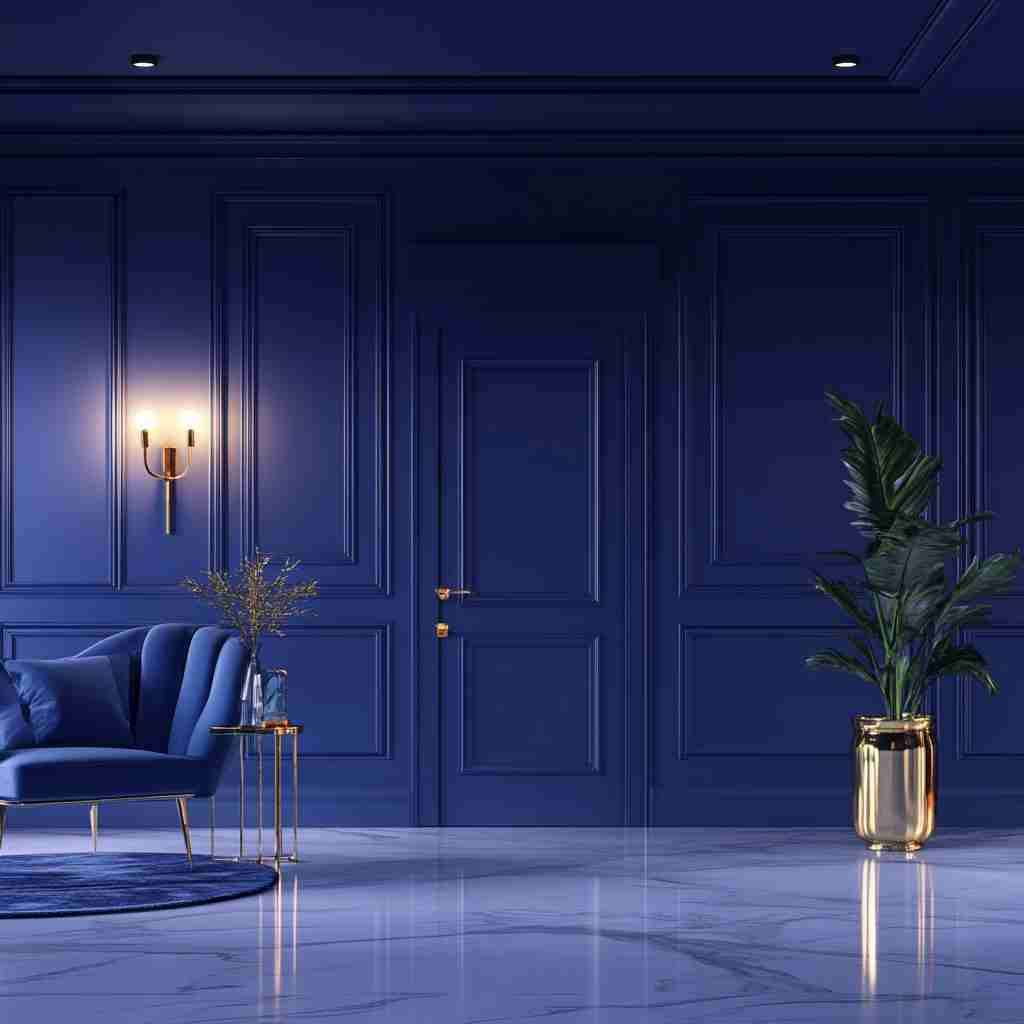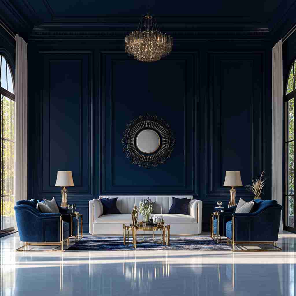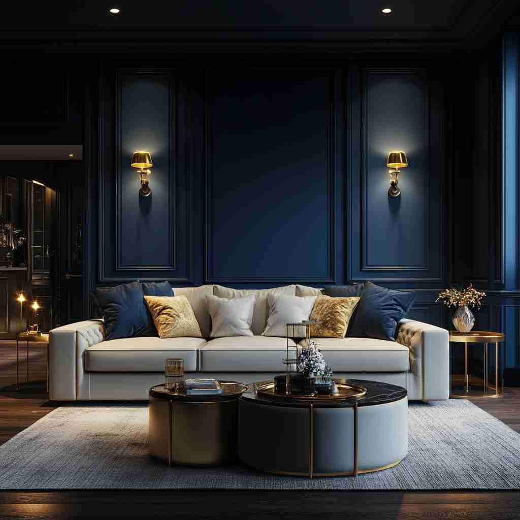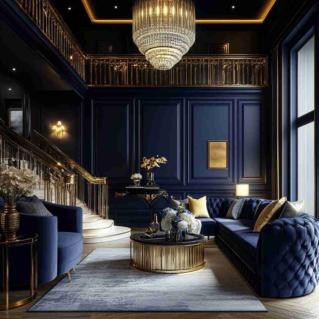 Tip: Balance the richness of navy and gold with neutral furniture in cream or beige to avoid overwhelming the space.